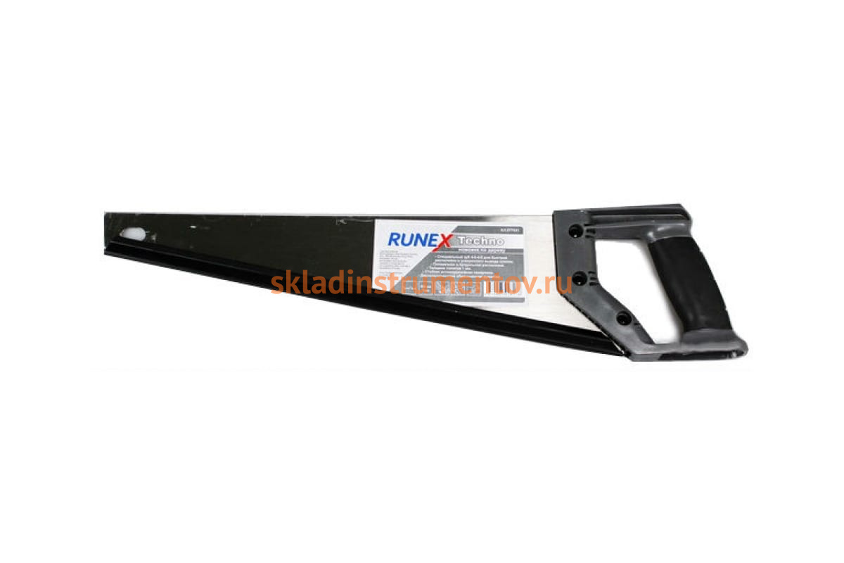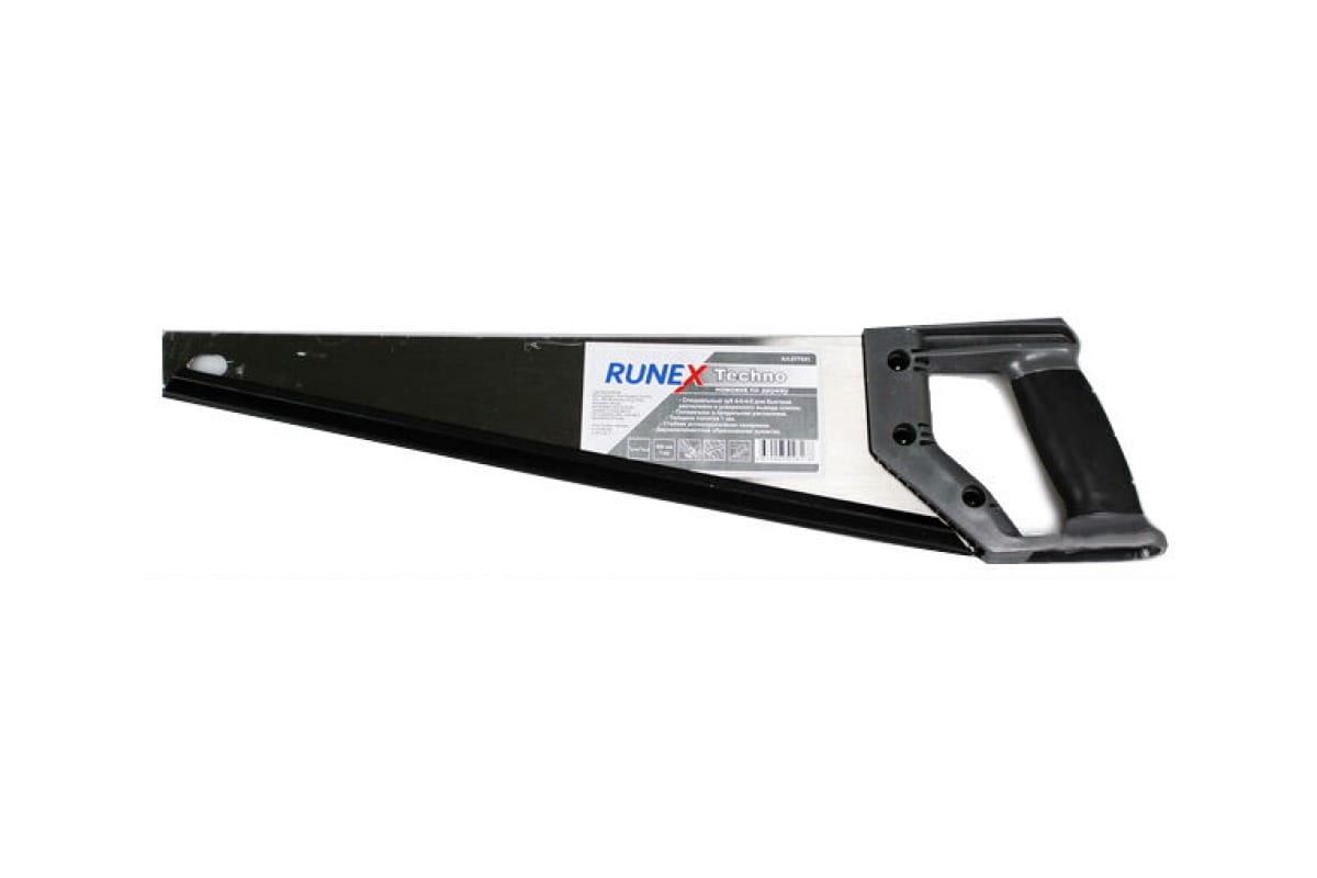 Ножовка по дереву Runex Techno 500мм прямой зуб 7 577432 - это ручной инструмент с двухкомпонентной рукояткой, который позволяет осуществлять быстрый и легкий распил сырой и свежей древесины, а также заготовок из твердых пород дерева. Полотно с прямым зубом типа 4-0-4-0 выполнено из пружинной стали, покрытой лаком для защиты от коррозии. Ножовка подойдет для поперечной и продольной распиловки.