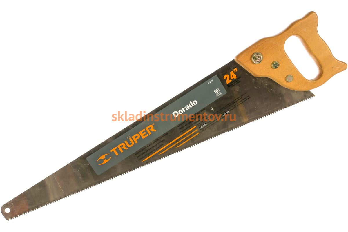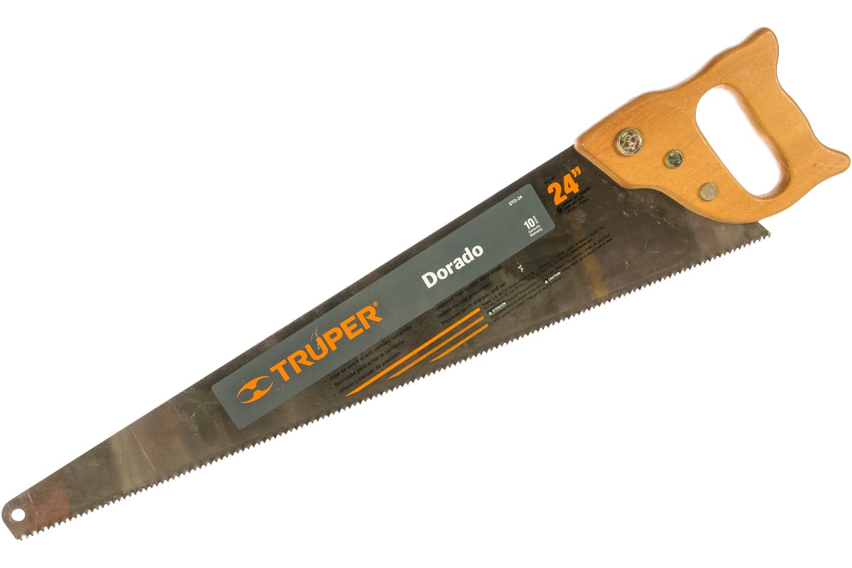 Ручная пила Truper STD-24 18170 представляет собой профессиональный ручной инструмент, который служит для распиливания деревянных деталей и заготовок. Пила широко используется в быту и столярных мастерских. Изделие имеет удобную деревянную ручку, которая надежно соединена вместе со стальным полотном. Пила удобна для хранения, ее рабочая часть оснащена специальным отверстием для подвески.