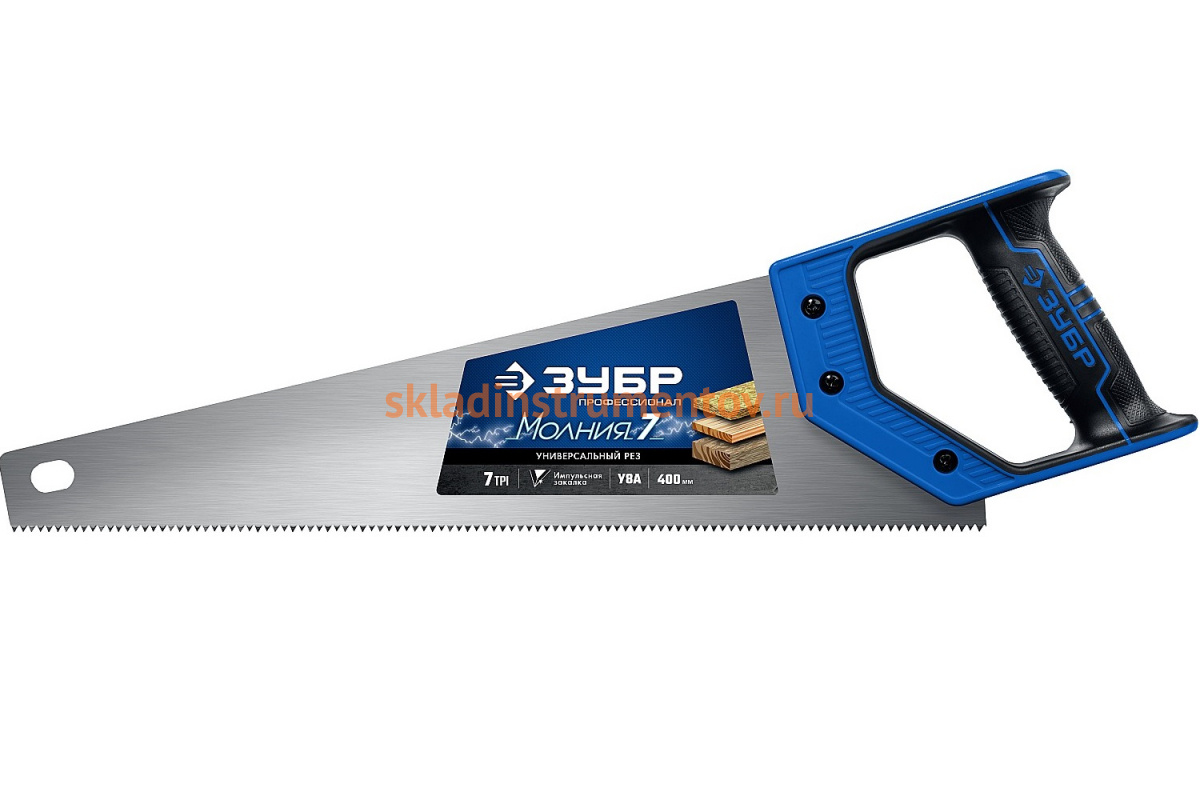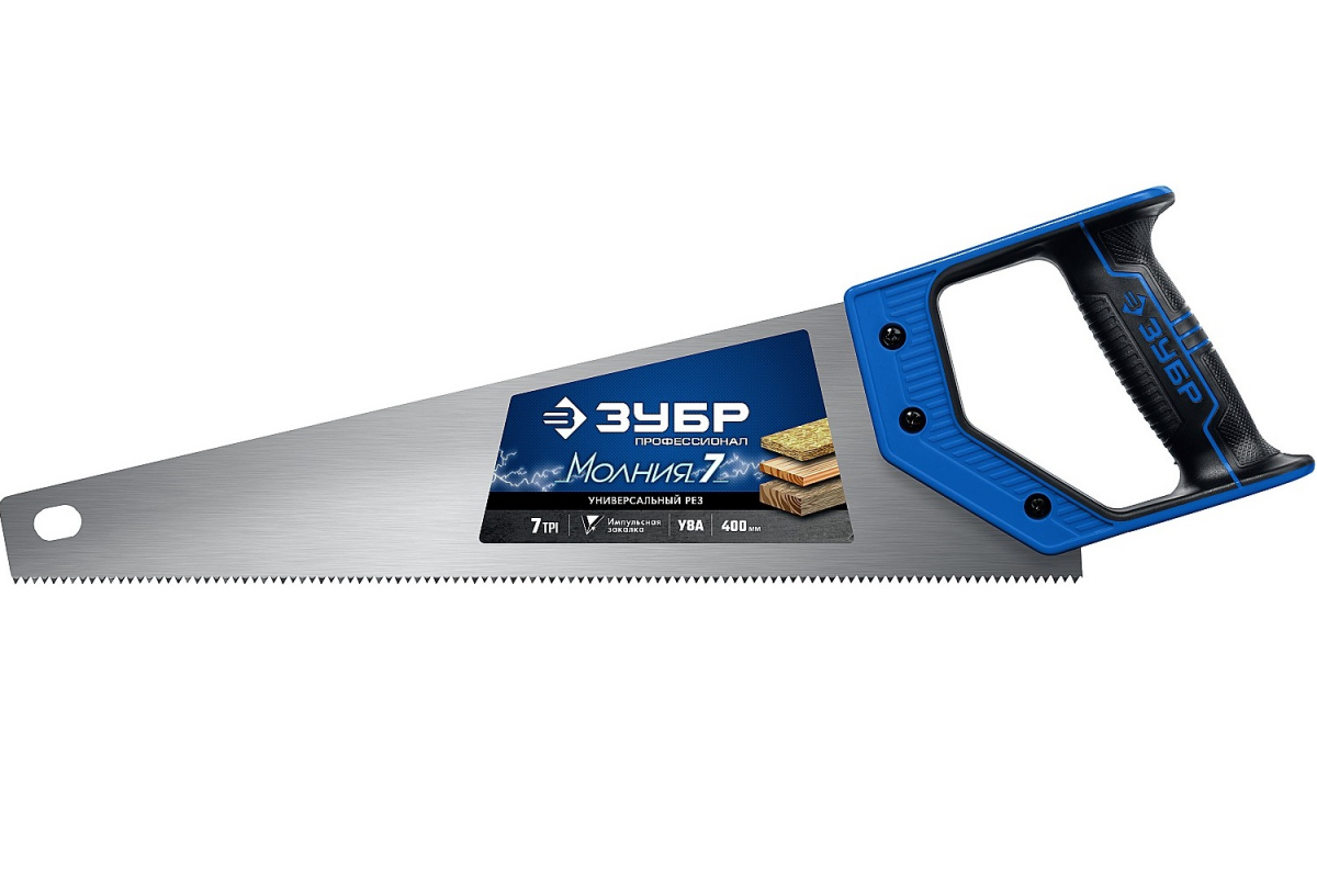 Универсальная ножовка Зубр МОЛНИЯ-7 400 мм, 7 TPI 1537-40_z02 подходит для продольной и поперечной распилки различной древесины, а так же ДСП, МДФ и фанеры.