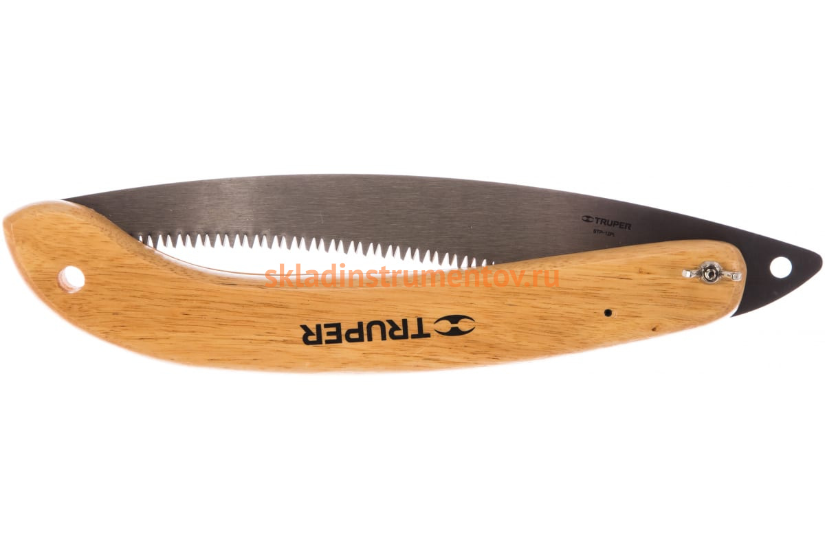 Складная пила TRUPER 300 мм с деревянной рукояткой STP-12PL 18178 предназначена для распила небольших деревянных заготовок, срубания веток и молодых деревьев. Инструмент удобно хранить, так как он обладает складным полотном. Лезвие выполнено из стали марки SK5. Пила оснащена деревянной рукояткой. Длина лезвия - 300 мм.