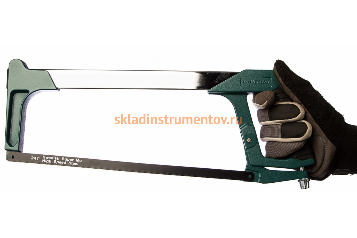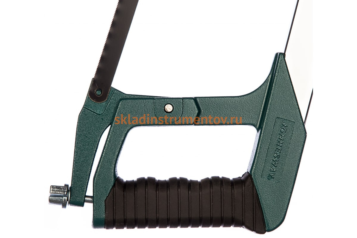 Ножовка по металлу Jonnesway MHS100AG - ручной инструмент для распиливания металлических материалов. В конструкции имеется специальный винт для регулировки натяжения полотна. Рукоятка покрыта резиновой накладкой, что способствует надежному удержанию инструмента. Длина полотна 300 мм.