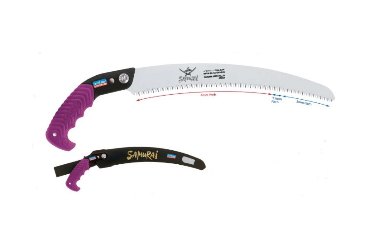Пила с изогнутым полотном с переменным шагом в чехле, с поясным креплением SAMURAI GCW-270-LMH — надежный инструмент для ухода за кустарниками и некрупными деревьями. Подходит для аккуратного удаления мелких веток, распиливания сухой древесины и небольших деревьев, срезания крупных и средних веток. Переменный шаг (3 мм, 3,5 мм, 4 мм) позволяет заменить сразу 3 пилы — для это нужно работать разными участками полотна. Закаленные зубья имеют 3 плоскости заточки, что позволяет осуществлять качественный обратный рез и увеличивать производительность работы, в целом. Инструмент отлично проявляет себя в любом положении, но особенно удобен для работы ниже уровня плеча. Комплектуется защитным чехлом для безопасного ношения, хранения, траснпортировки.