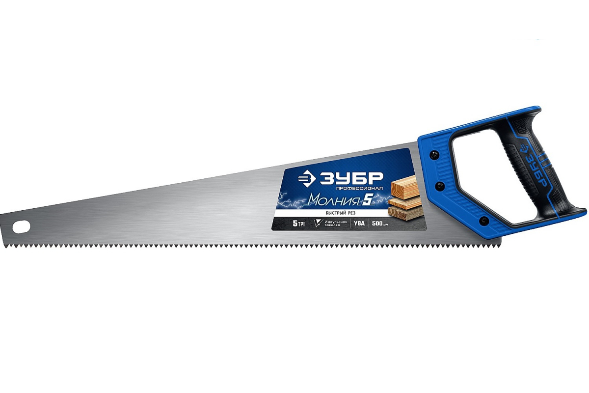 Ножовка по дереву Зубр МОЛНИЯ-5 500 мм, 5 TPI, 15075-50_z02 подходит для продольной и поперечной распилки различной древесины, а так же ДСП.