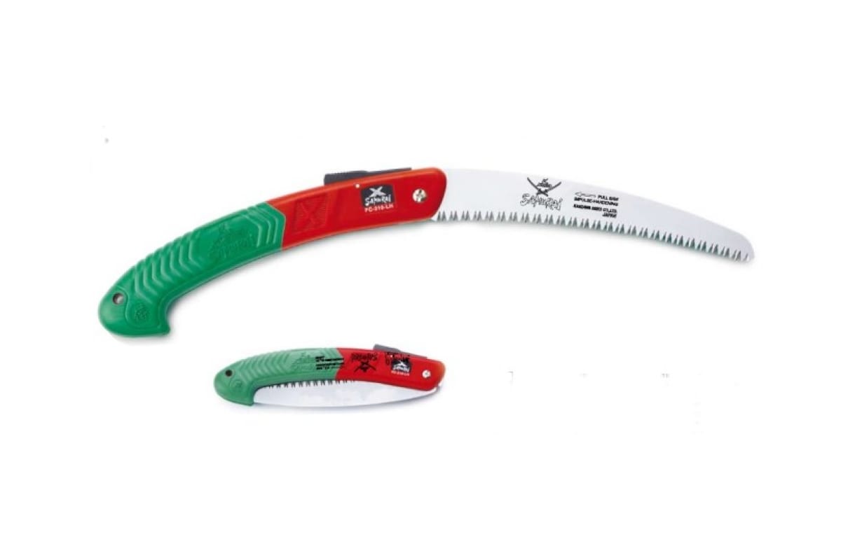 Пила складная с фиксатором изогнутое полотно SAMURAI FC-240-LH — надежный помощник по уходу за кустарниками и небольшими деревьями в саду. Она также пригодится на рыбалке и в турпоходе. Инструмент предназначен для распила сухой древесины и небольших деревьев, обрезки ветвей. Зубья закалены индукционными токами и имеют трехгранную заточку, что в сочетании с зауженным утонченным полотном обеспечивает легкий и ровный рез, в том числе обратный. Особенно пила эффективна при работе выше уровня плеча. Изделие обладает износоустойчивостью и способно выдерживать интенсивные нагрузки.