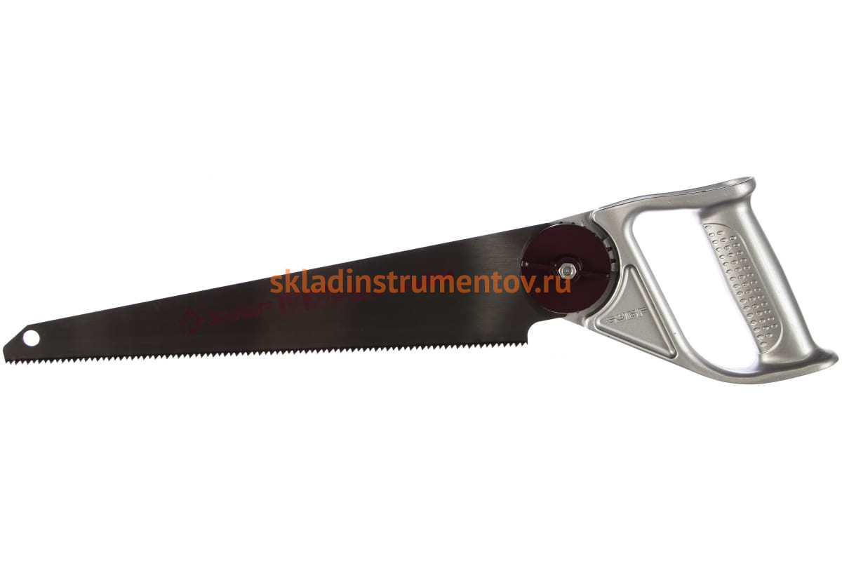 Универсальная ножовка ЗУБР 4-15178 - профессиональный инструмент для точного и быстрого распиливания изделий из дерева вдоль и поперек волокон. Полотно длиной 330 мм выполнено из инструментальной стали высокого качества, зубья закалены и имеют трехгранную заточку, шаг зубьев 3.5 мм.