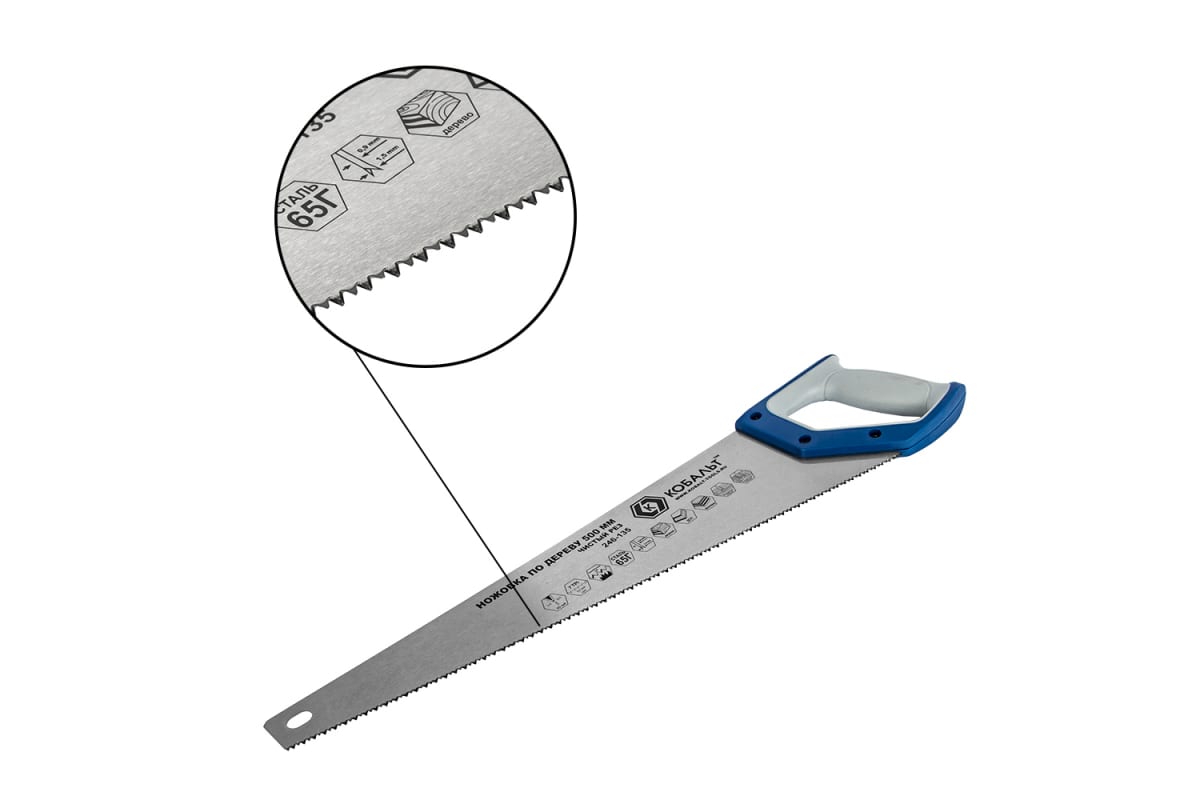Ножовка по дереву КОБАЛЬТ 500 мм 246-135 используется при плотницких и столярных работах для пиления деревянных заготовок. Для удобства работы предусмотрена двухкомпонентная рукоятка специальной формы. Длительный срок эксплуатации обеспечен стойкой к деформации пружинной сталью, из которой изготовлен инструмент.