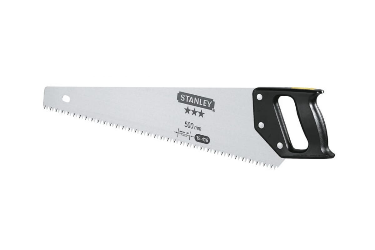 Ножовка по дереву с прямыми зубьями Stanley 3,5х500 мм 1-15-416 обладает полотном из шведской стали. Ручной инструмент для работы с деревянными заготовками, пиления веток и т.п. Зубья прямой формы можно затачивать. Рукоятка выполнена из АБС-пластика, крепится к полотну тремя цинковыми винтами.