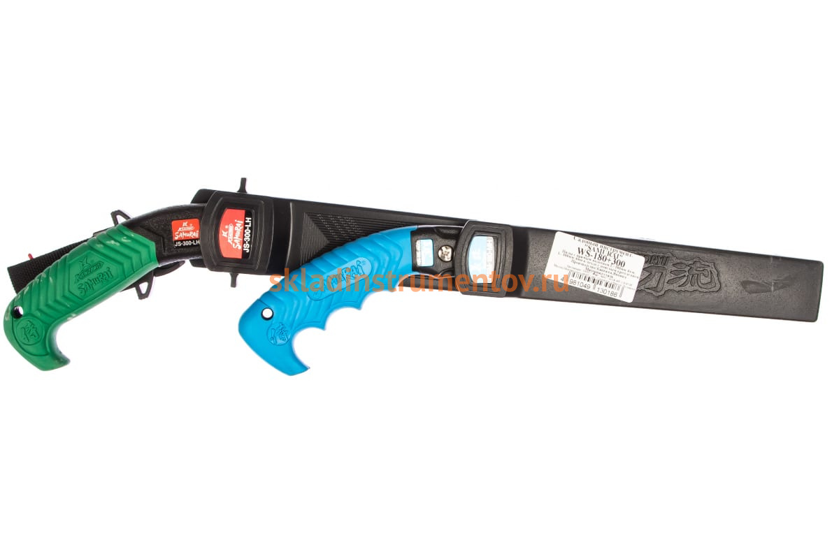 Пилы с прям. полотном в чехле, с поясным крепл. WS-180+300 SAMURAI заменят вам практически весь садовый инструмент для ухода за своим приусадебным участком. С помощью данного набора пил можно не только обрезать ветки с маленьких кустов, но и толстые ветки деревьев. Полотно во всем наборе выполнено из качественной стали. Длина лезвия - 180 и 300 мм.