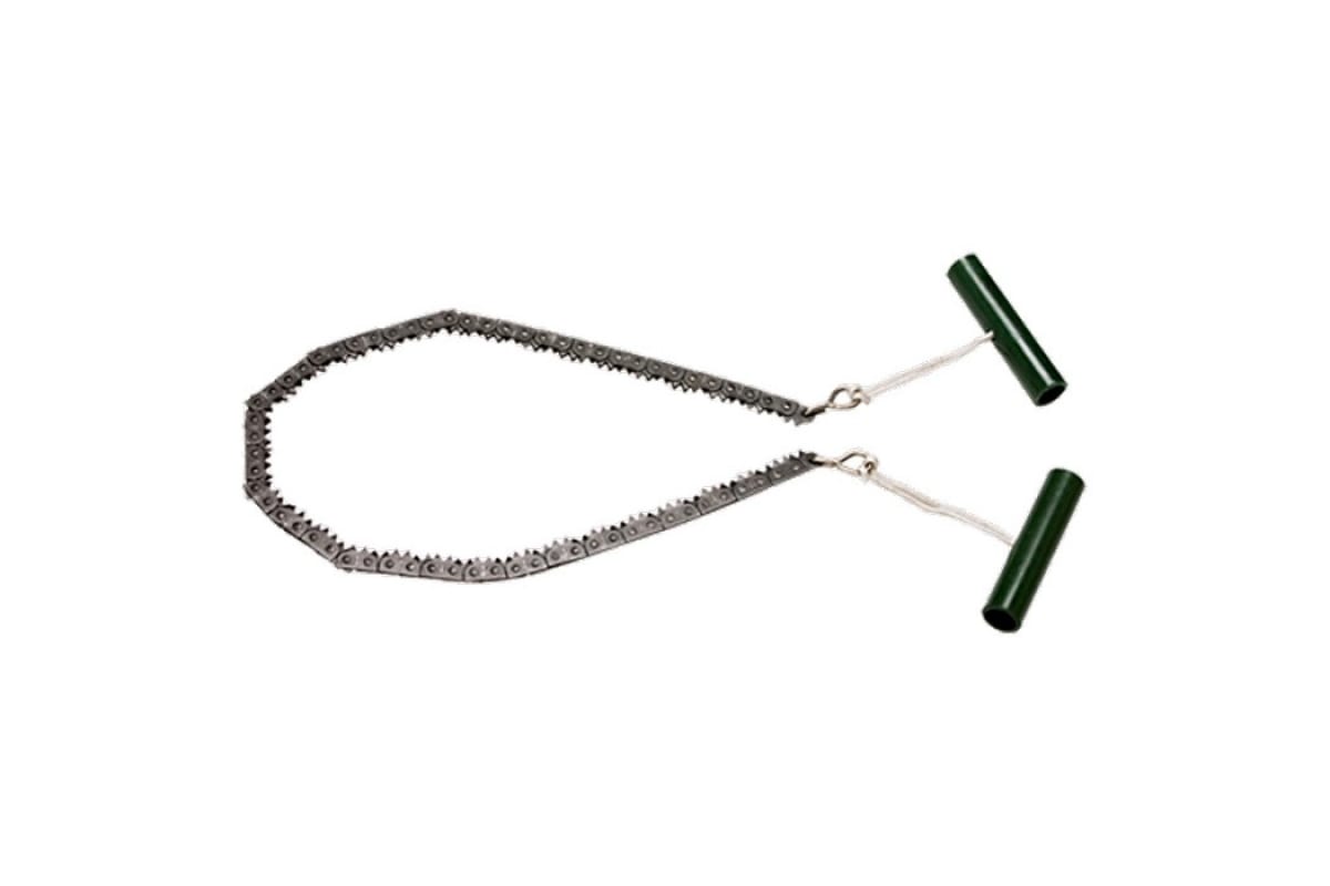 Цепная пила 730 мм СИБРТЕХ 23039 пригодится любителям охоты, рыбалки и просто туристам. Состоит из цепи, изготовленной из термически обработанной стали марки 65 Г. На концах цепи имеются пластиковые рукоятки. Полотно инструмента с фигурным зубом подходит для распила сырой древесины. Количество зубьев на дюйм – 5. Форма полотна позволяет распиливать древесину в любом положении круговыми движениями.