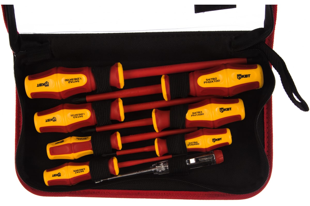 Набор диэлектрических отверток КВТ Профи НИО-08 78619 применяется для проведения монтажных работ под напряжением до 1000 В. Стержни инструментов выполнены из прочной хром-ванадиевой стали. Отвёртки оснащены прямыми рукоятками с мягкими прорезиненными вставками, которые не скользят в руке.