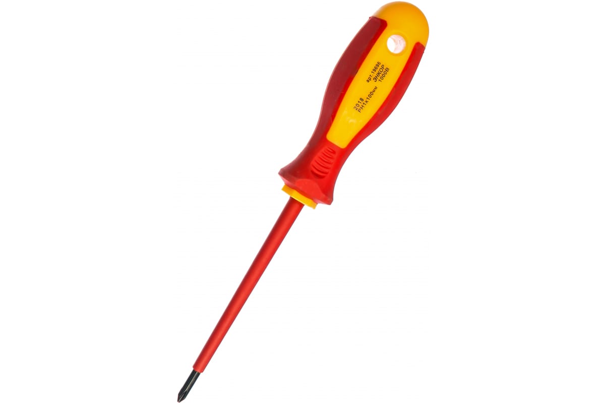 Диэлектрическая крестовая отвертка PH1х100мм Энкор 19696 предназначена для столярных или ремонтных работ. Служит для работы с резьбовыми соединениями под напряжением до 1000В. Стержень из хромванадиевой стали с диэлектрическим покрытием. Двухкомпонентная рукоять обеспечивает надежный захват и позволяет снизить нагрузку на кисть.