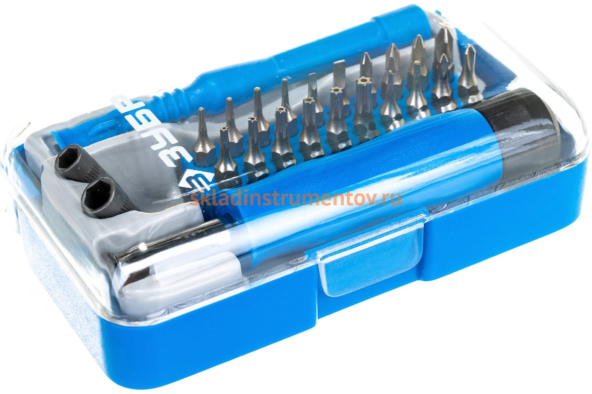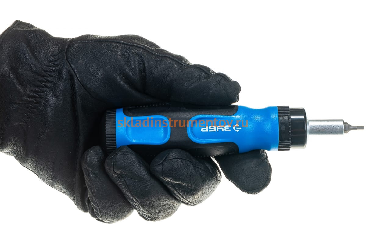 Реверсивная отвертка Зубр ЭКСПЕРТ с насадками 130 предметов 25237-H129 предназначена для широкого спектра работ. Биты выполнены из закаленной хромованадиевой стали, благодаря чему имеют высокий рабочий ресурс и повышенную прочность. Двухкомпонентная рукоятка инструмента обеспечивает крепкий захват и передачу высокого крутящего момента к профилю крепежа. За счет магнитного держателя производится быстрая замена насадок.