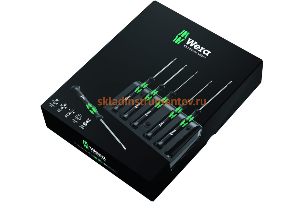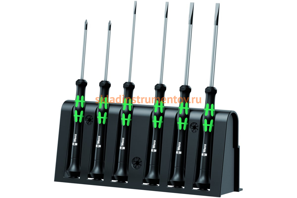 Набор отверток для электроники 2035/6 A SATZ 6 TLG. WERA Micro WE-118150 - прекрасное решение для электронщиков, оптиков, механиков по точным работам, ювелиров, монтажников оборудования для передачи данных или моделистов. Данный радиотехнический набор ручных инструментов состоит из 6 компонентов в упаковке с окошком и со стойкой. Наличие стойки поможет Вам хранить отвертки в порядке и всегда иметь легкий доступ к инструменту. Рассматриваемый комплект инструментов используется для винтов с прямым шлицем и шлицем Phillips-Recess.