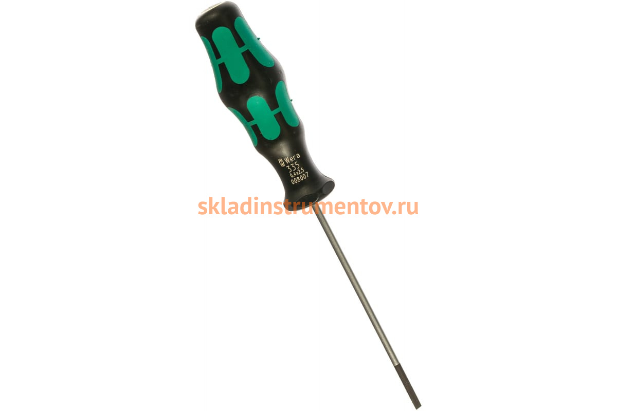 Отвёртка 335 0,4 х 2,5 х 75 мм Wera WE-008007 - это усовершенствованная шлицевая отвёртка. Она имеет небольшой вес и малые габариты, поэтому удобна в хранении.