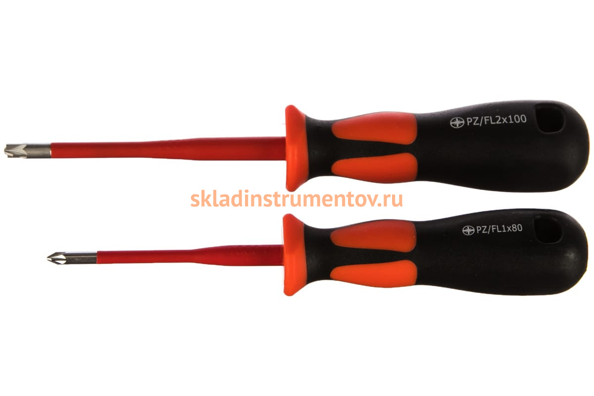 Набор диэлектрических отверток КВТ Слим НИО-3302 PZ/FL 78350 подходит для монтажных работ под напряжением до 1000 В. Инструменты прошли тестирование под напряжением 10 кВ согласно DIN 60900. Изоляция, утопленная в лезвие отверток, делает возможным монтаж винтов с глубокой посадкой.