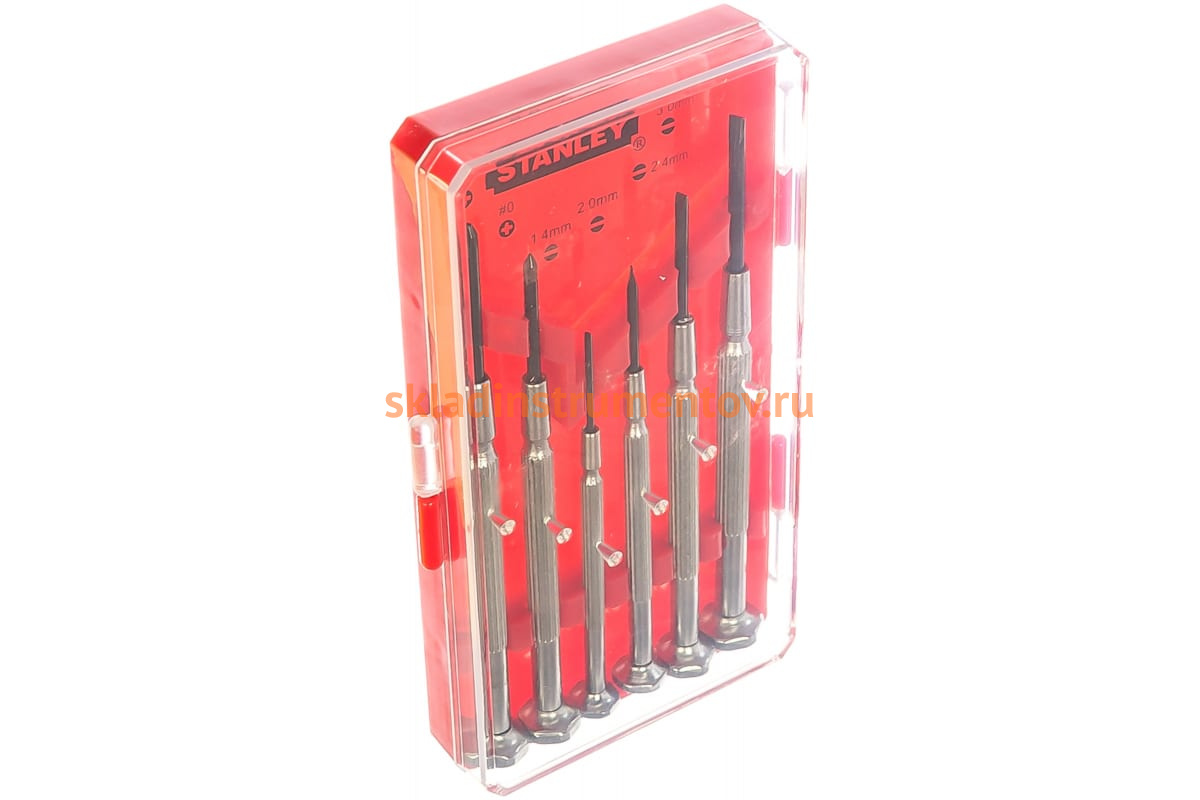Набор отверток Stanley 1-66-039 состоит из шести предметов с разными рабочими профилями - крестовым и плоским. Отвертки имеют специальную конструкцию для удобства управления. Изделия предназначены для выполнения сборочно-демонтажных работ в точной механике. Каждая отвертка имеет продольные ребра на ручке, что снижает риск проскальзывания инструмента во время работы. Для защиты от износа и появления коррозии отвертки имеют вороненые наконечники и никелированные рукоятки.