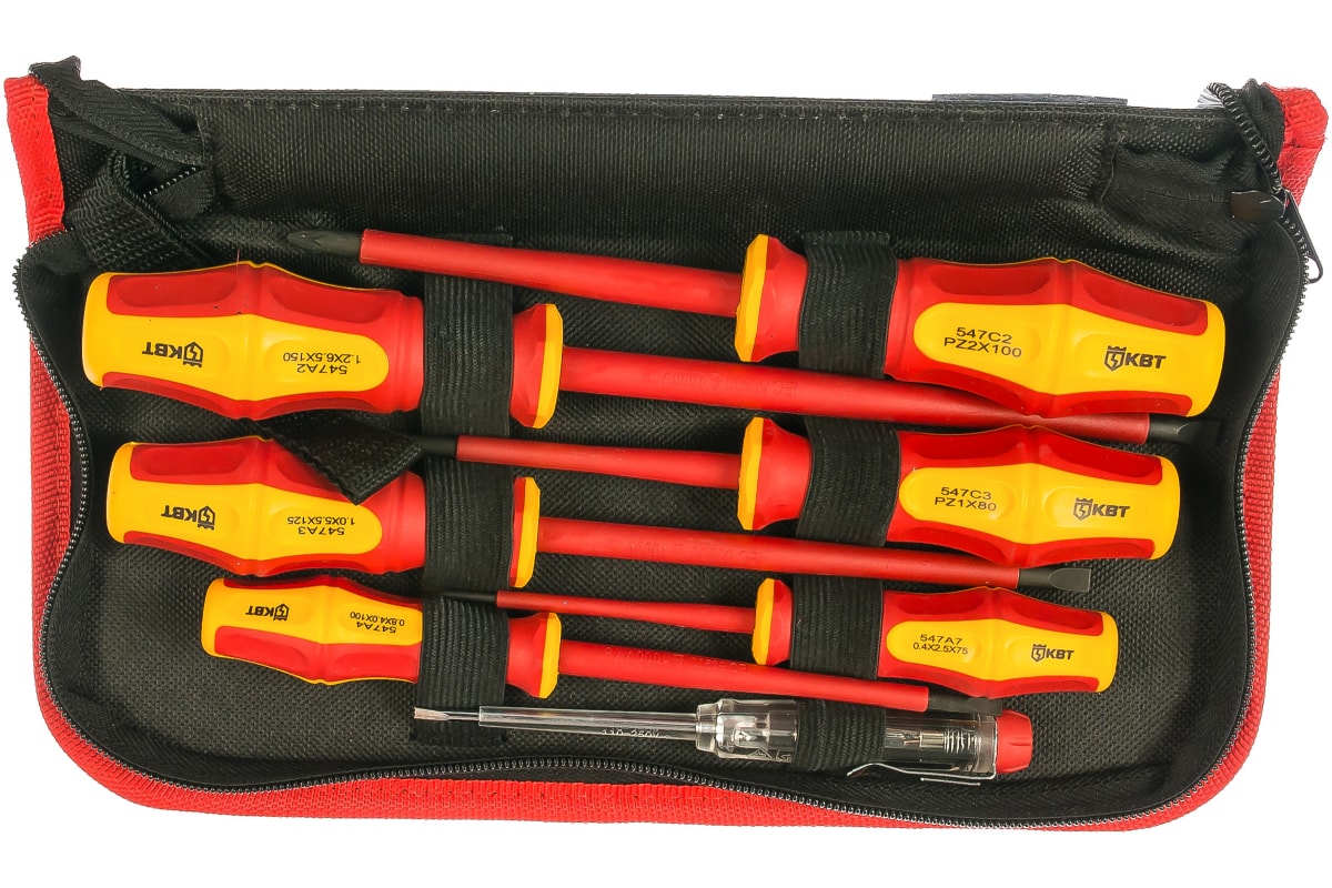 Набор диэлектрических отверток КВТ Профи НИО-07 78618 предназначен для проведения монтажных работ под напряжением до 1000 В. Инструмент оснащён прямыми рукоятками с мягкими прорезиненными вставками, которые не скользят в руке. Стержни отвёрток выполнены из прочной хром-ванадиевой стали.