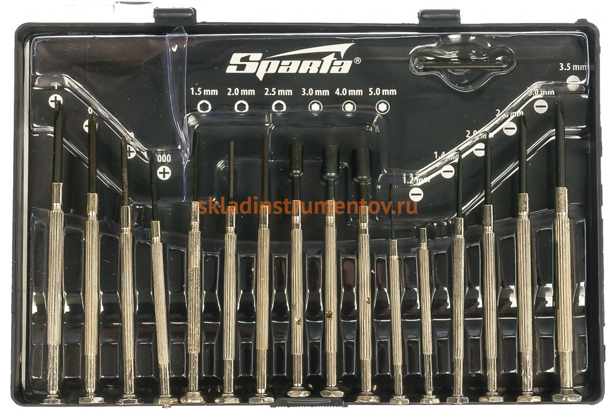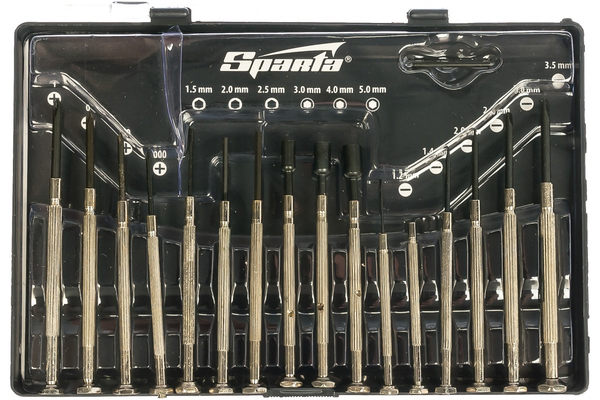 Набор отверток для точной механики 16шт SPARTA 11783 - надежный помощник для мастера-ремонтника в сфере починки часовых механизмов и электронной техники. Отвертки прочны, долговечны и удобны в эксплуатации, подходят для работы с мелкими деталями.