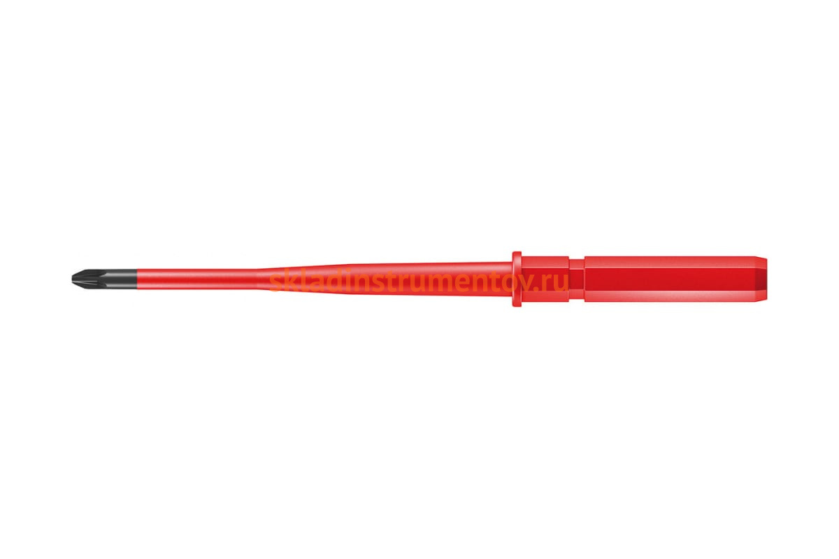 Сменная тонкая отвёртка WERA Kraftform Kompakt VDE 65 iS PZ/S PlusMinus PZ/S 2x154 мм WE-003448 проверена напряжением 10 000 В. Проверка проводится поштучно по стандарту IEC 60900.