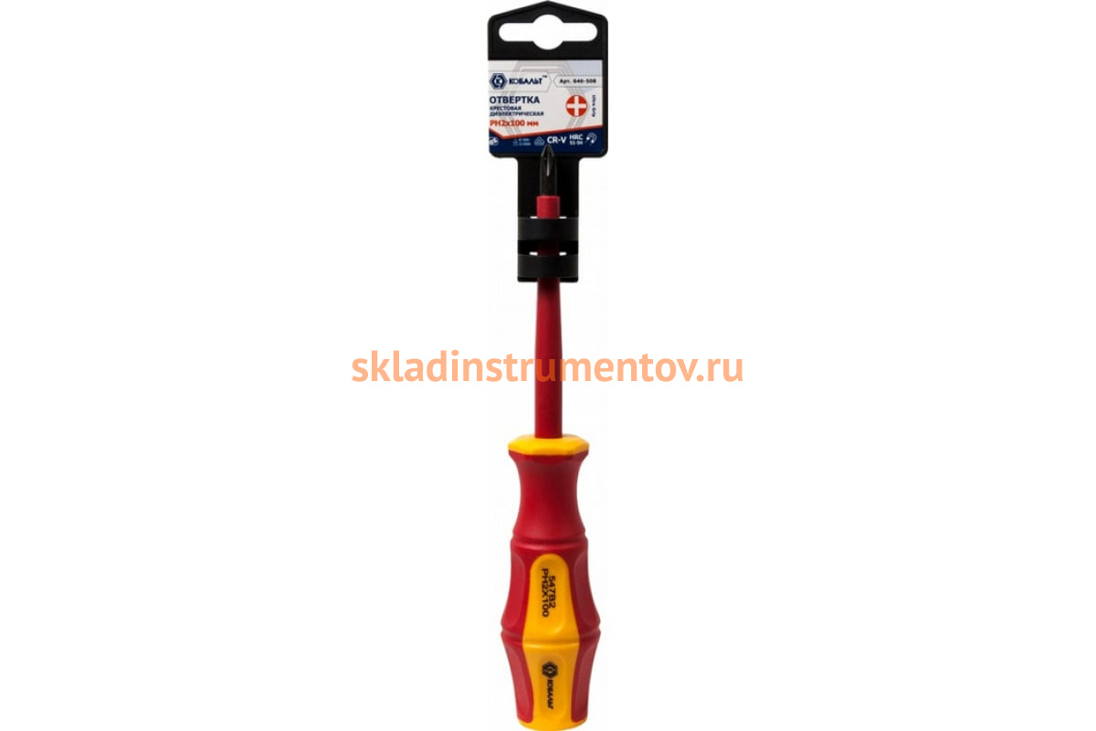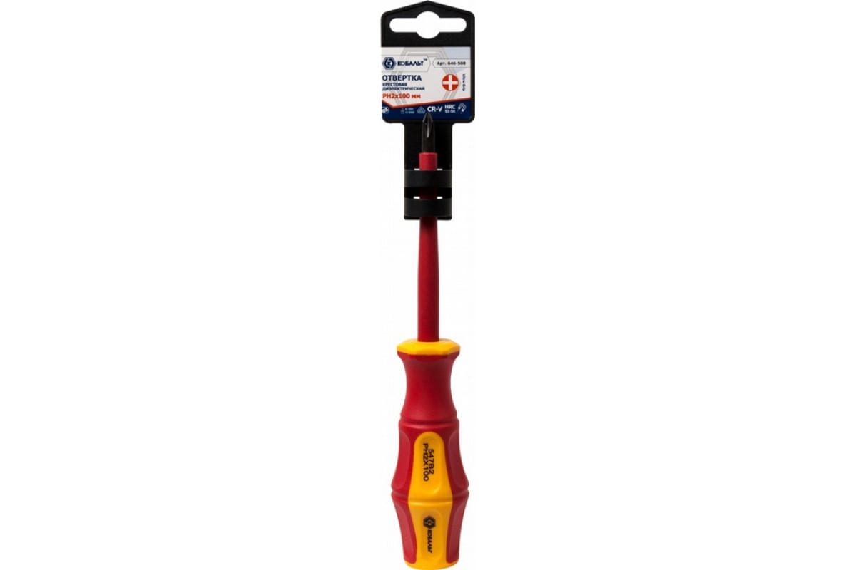 Отвертка диэлектрическая Ultra Grip PH-2 х 100 мм КОБАЛЬТ CR-V 646-508 - ручной инструмент, предназначенный для завинчивания и отвинчивания болтов и винтов. Стальной закаленный стержень имеет намагниченный наконечник, с помощью которого удерживается деталь. Специально спроектированная двухкомпонентная рукоятка обеспечивается удобное положение в руке.