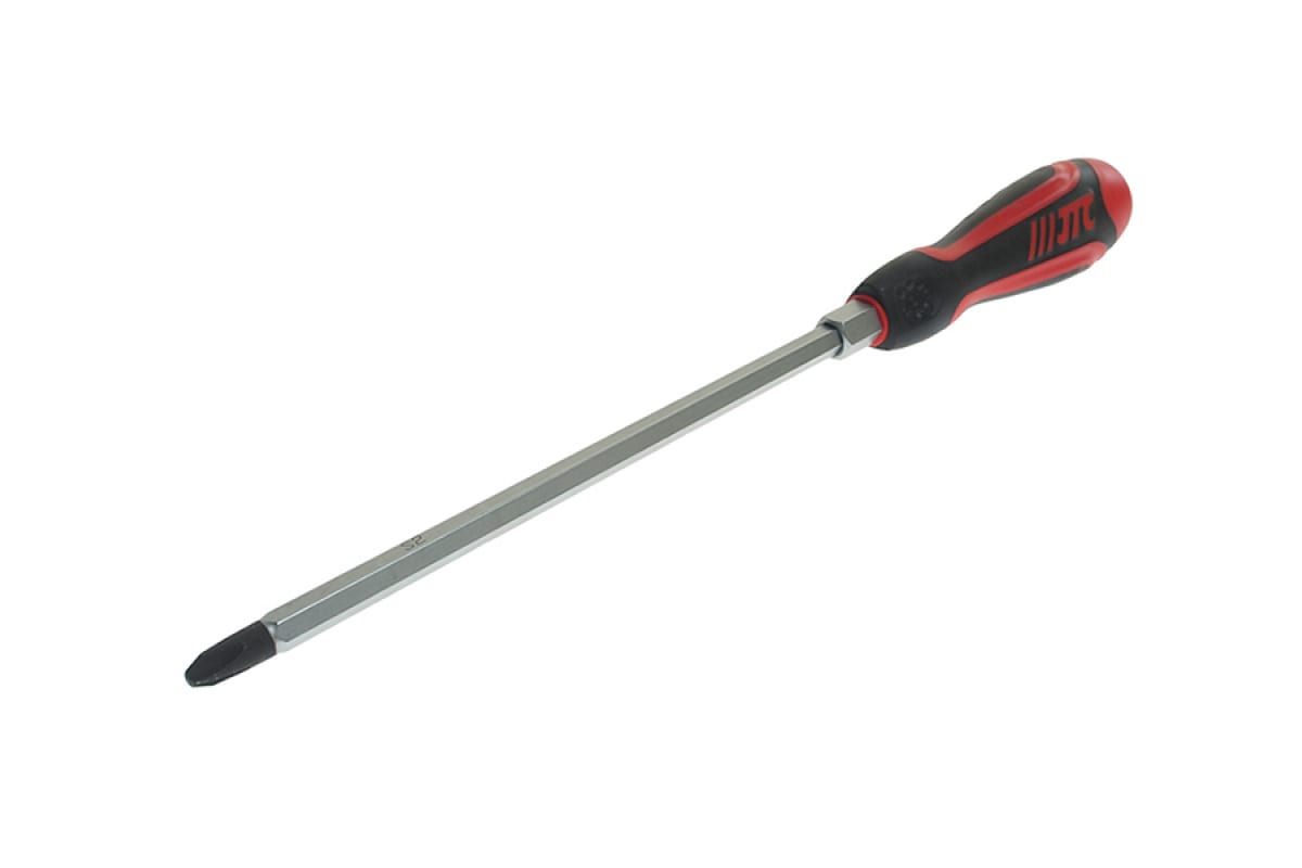 Отвертка, крестовая PH3 х 200мм усиленная со сквозным стержнем JTC 7622 используется для работы со сложным крепежом.