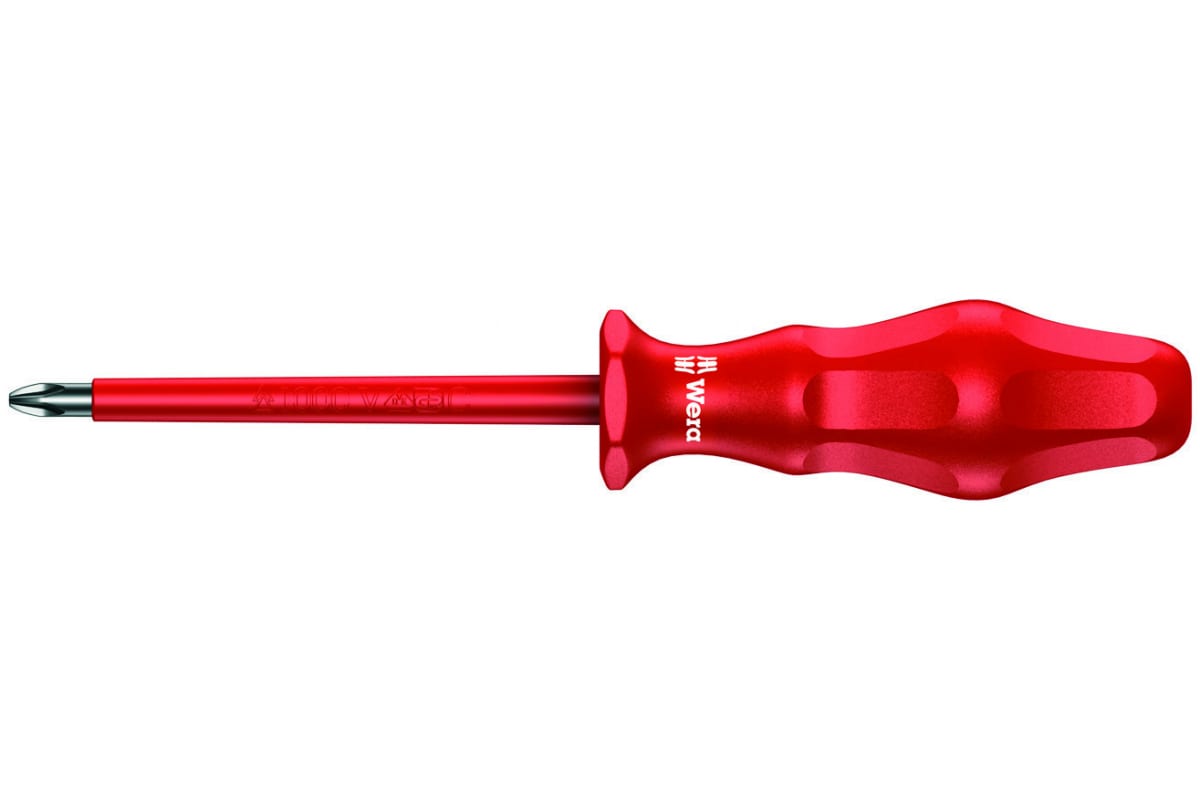 Отвёртка 1000 V 1762i PH 1/80 мм Wera WE-031250 - это крестовая отвёртка, изготовленная из прочной стали (хром-молибден-ванадиевой). Основной её плюс в том, что она является изолированной. Это позволяет работать в экстремальных условиях. Отвёртка имеет небольшие размеры и малый вес, поэтому удобна в хранении.