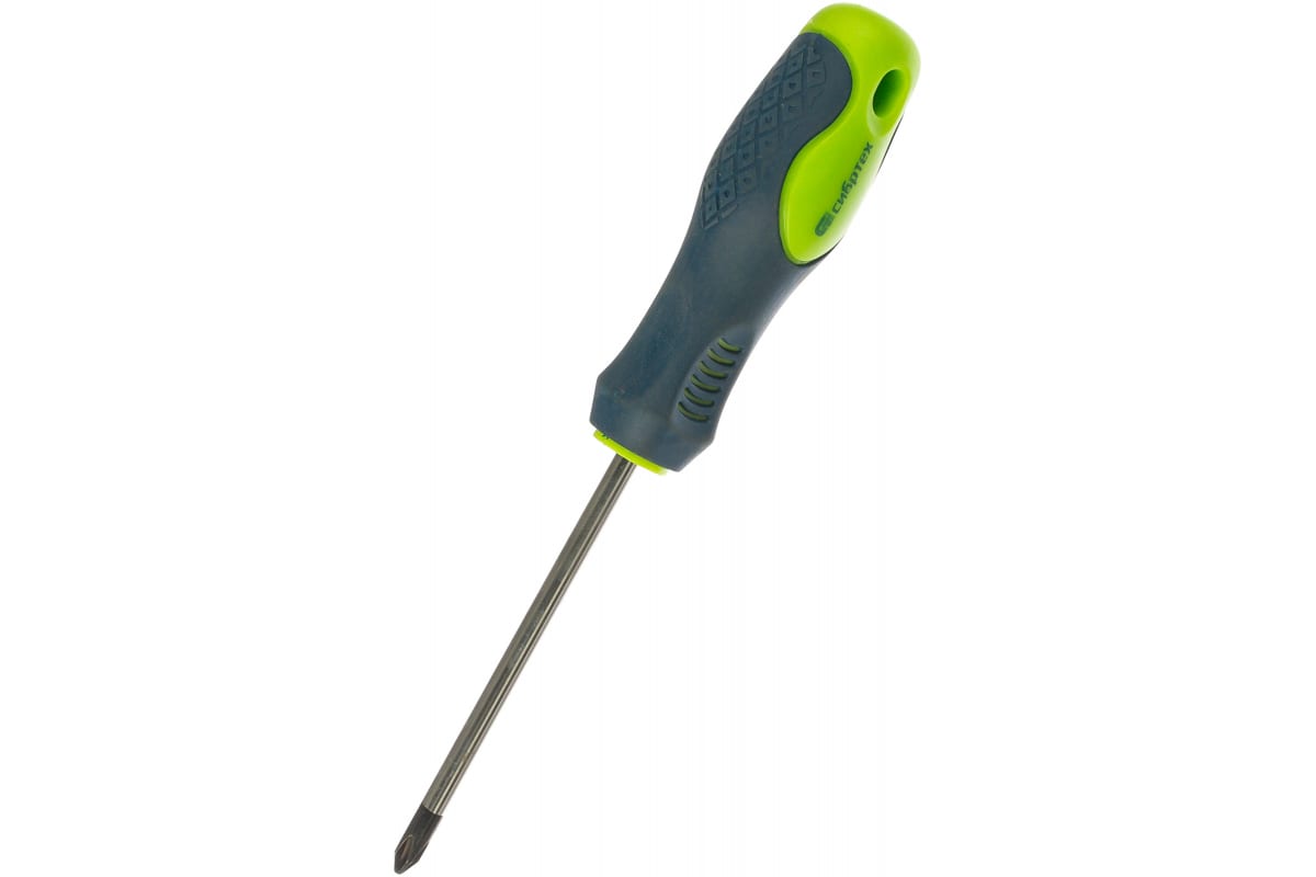 Отвертка, Ph2 х 100 мм CrV, 2-х компонентная рукоятка СИБРТЕХ 11845 предназначена для работы с крестообразным крепежом. Применяется в строительных и хозяйственных сферах деятельности для монтажа/демонтажа конструкций. Двухкомпонентная рукоятка обеспечивает удобство при работе, а наличие в ней отверстия позволяет разместить инструмент на стенде.