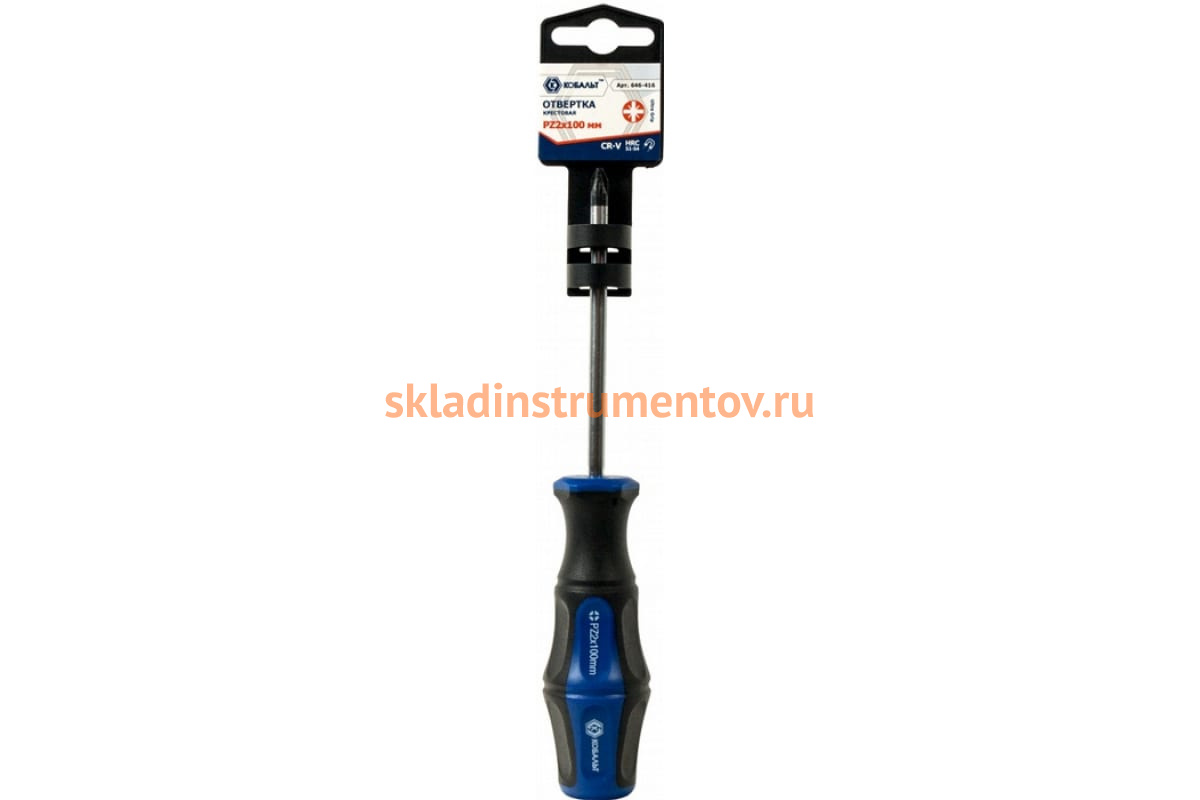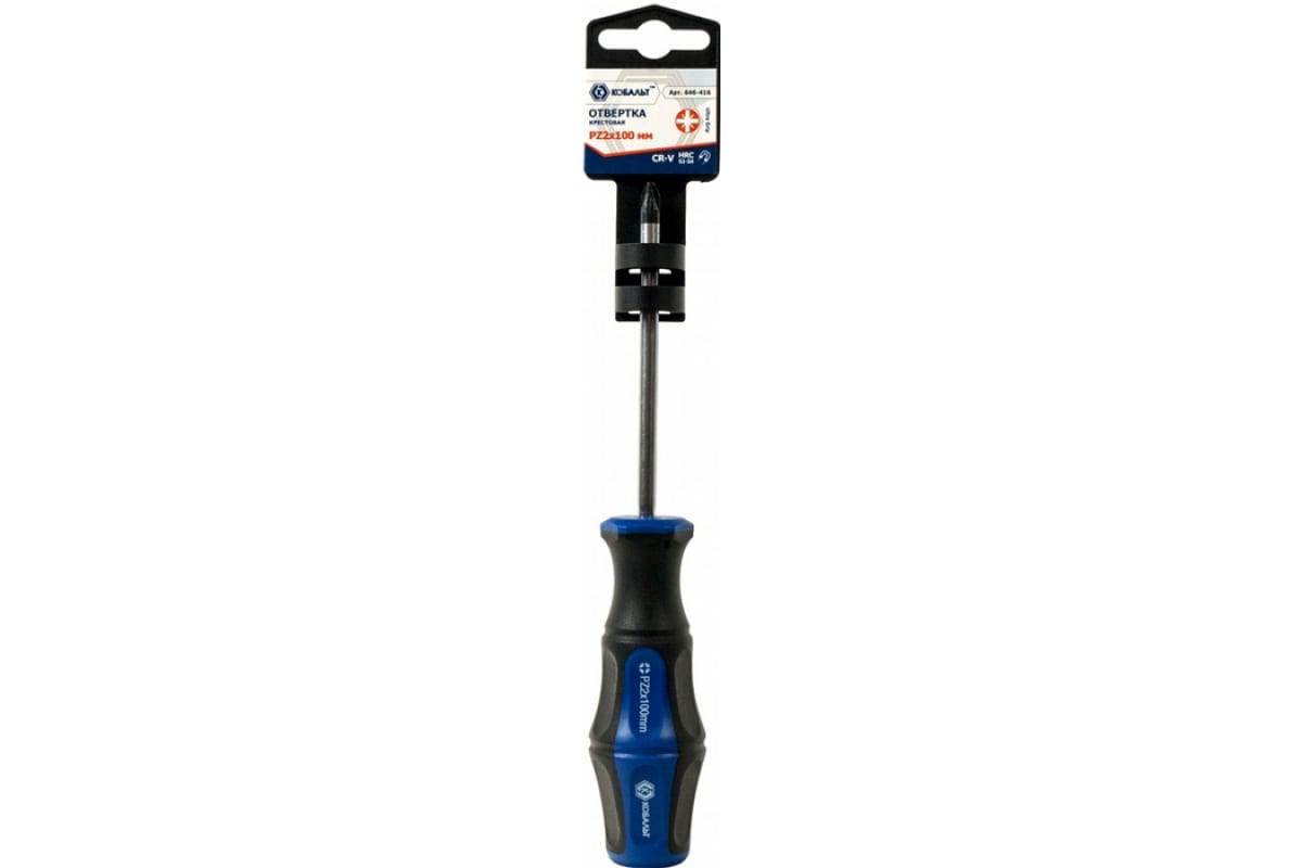 Отвёртка Ultra Grip PZ-2 х 100 мм CR-V КОБАЛЬТ 646-416 - ручной инструмент, предназначенный для работ с крестовыми крепежами. Для точного контроля детали во время работы предусмотрен магнитный наконечник. Закаленный стержень из качественной стали обеспечивает стойкость при нагрузках и долгую службу изделия. Специально спроектированная рукоятка дает возможность для крепкого захвата без выскальзывания.
