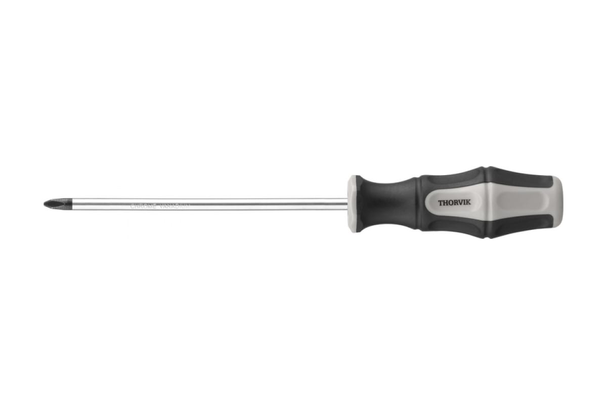 Крестовая отвертка THORVIK SDP3200 PHILLIPS PH3x200 мм 52157 - это инструмент с двухкомпонентной маслобензостойкой рукояткой. Рабочая часть изготовлена из хромованадиевой стали и оснащена намагниченным жалом для удобной работы в пазах. Отвертка подойдет для обслуживания крепежа с крестовым шлицем.
