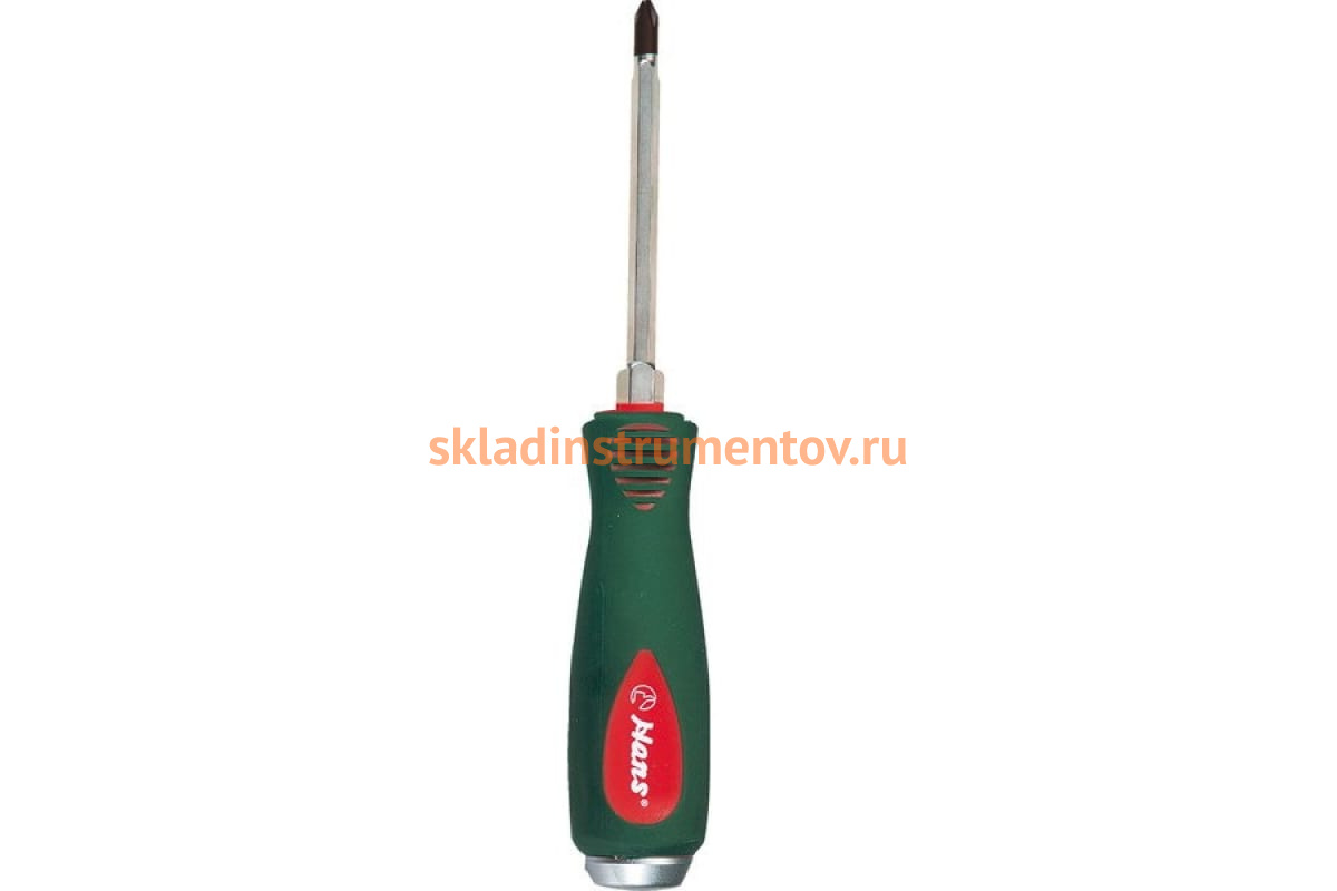 Силовая отвертка с металлическим затыльником Hans PH 0526PH3-06 представляет собой ручной инструмент, по которому можно наносить удары молотком для демонтажа прикипевших или заржавевших винтов. Стержень изготовлен из прочной стали и имеет намагниченный наконечник. На конце рукоятки расположен металлический затыльник.