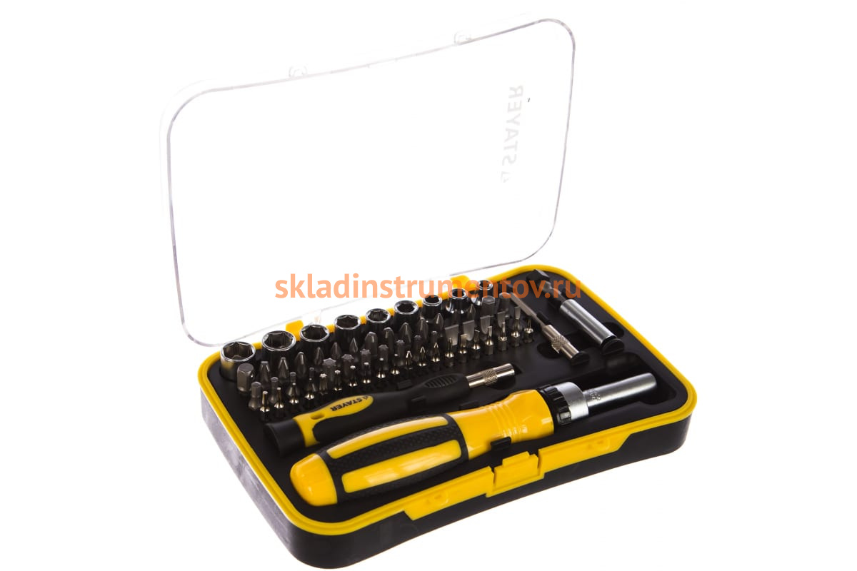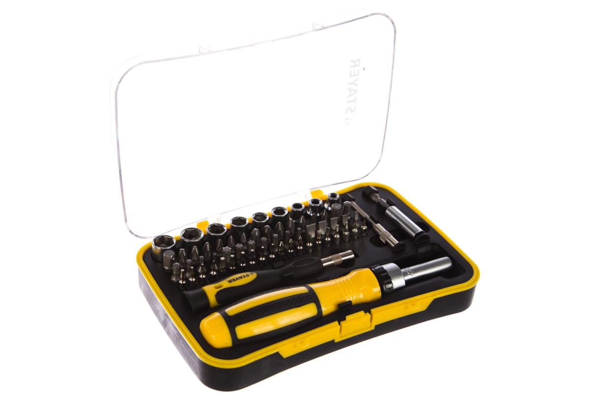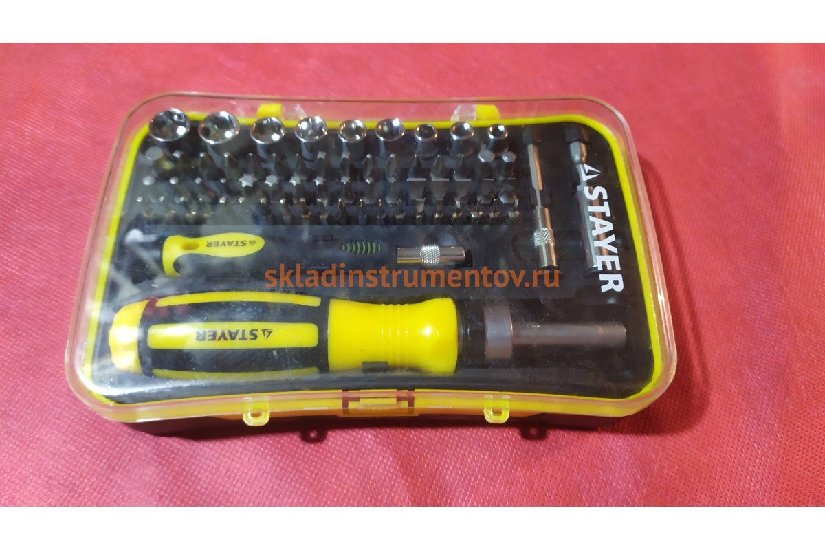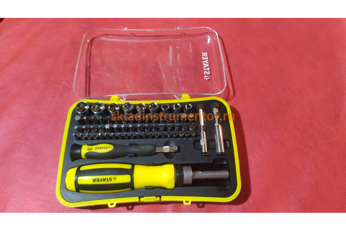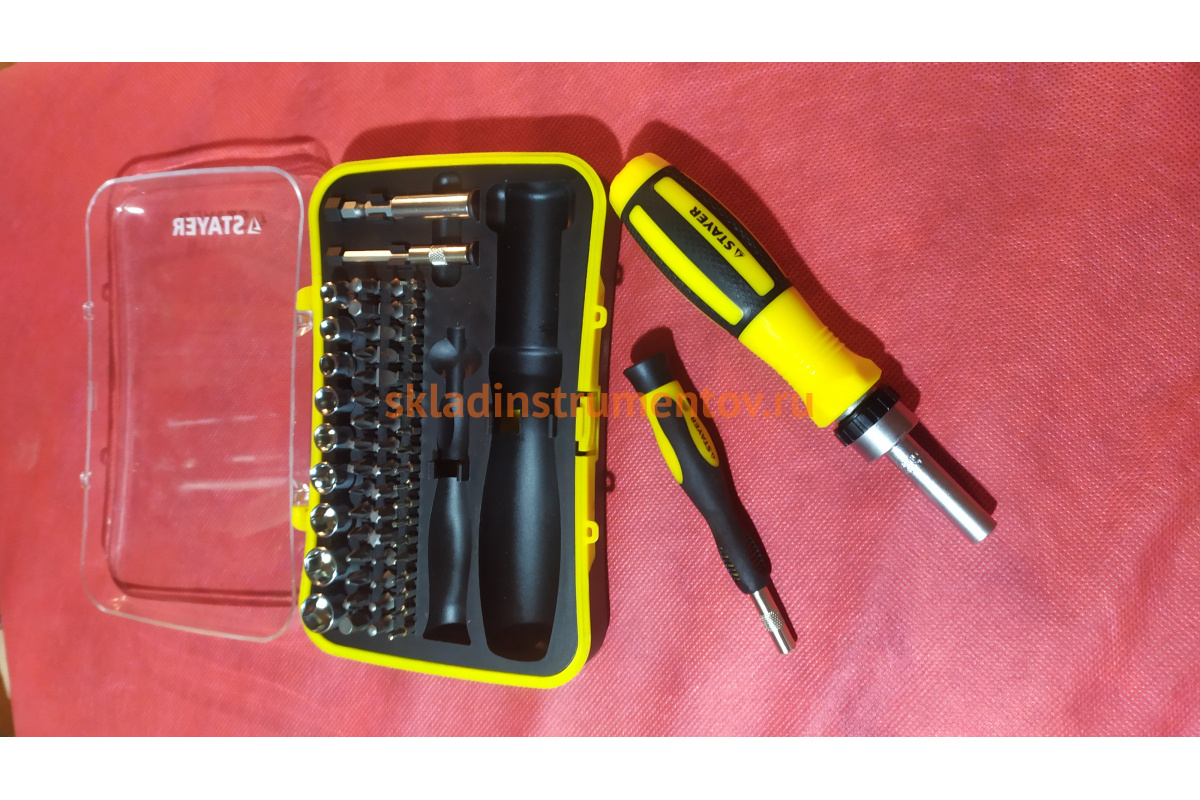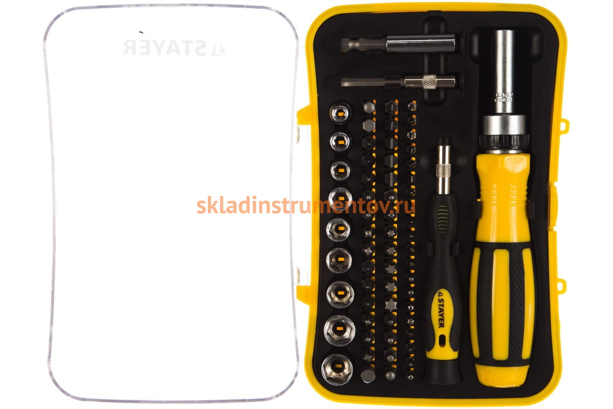 Набор насадок с реверсивной отверткой 65 предметов STAYER MASTER 25310-H65 - комплект для осуществления работ с крепежными элементами. Обеспечивает комфорт при закручивании и точность. Насадки прошли закалку по особой технологии, что гарантирует долговечность использования. Широкая комплектация обеспечивает универсальность в применении. Набор поставляется в пластиковом боксе.