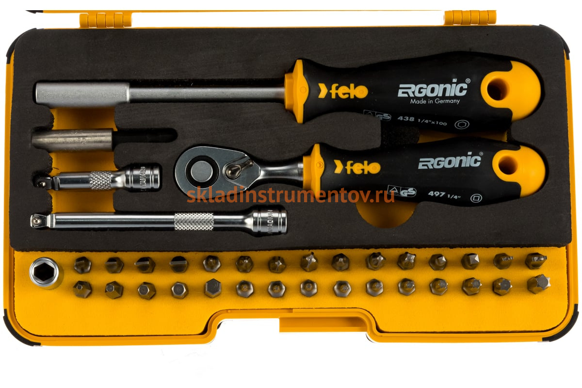 Набор бит Felo ERGONIC SL/HEX/PH/PZ/Tx/SQ/SPANNER/BH/MS с трещоткой и отвертка с держателем бит в кейсе, 36 шт 05783606 представлен в оптимальной комплектации с популярным размерным рядом. Данная модель имеет широкий набор бит для разного типа работ с резьбовыми соединениями.