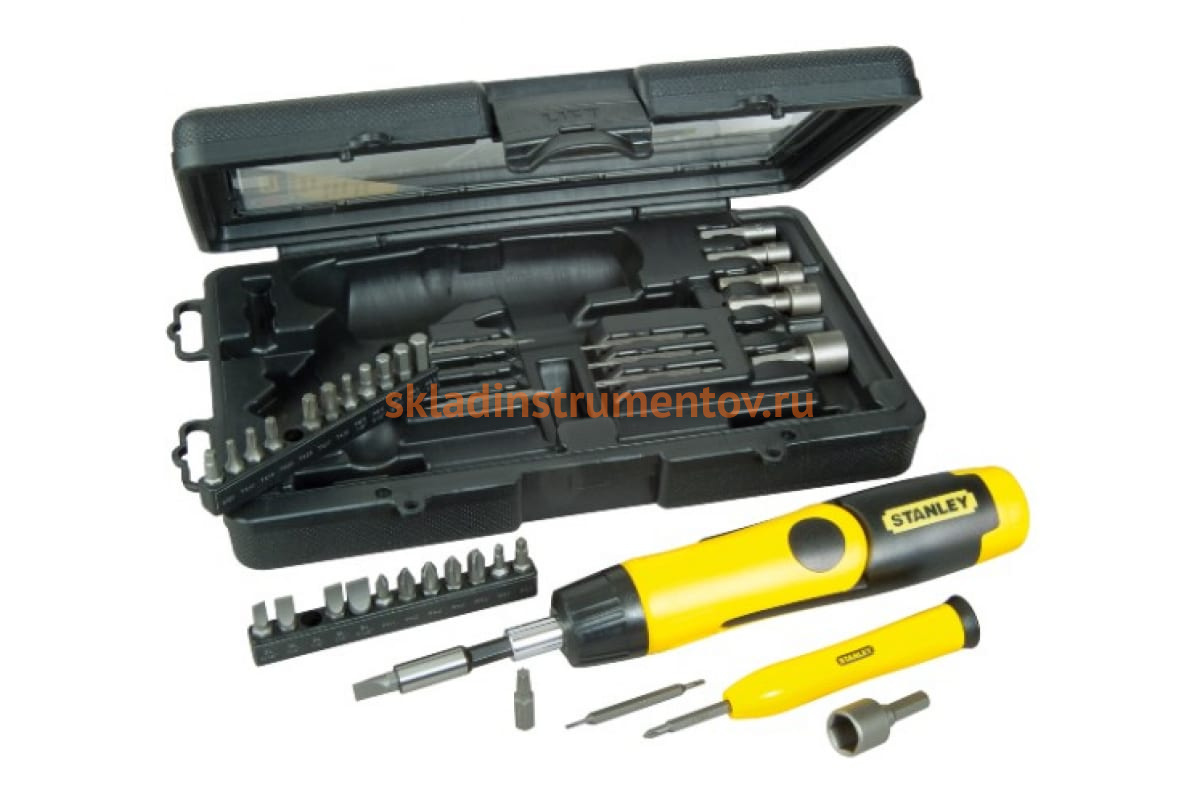 Отвертка со вставками 38 предметов в футляре Stanley 0-63-038 используется для работы с резьбовыми соединениями. Набор оснащен 36 насадками из прочной стали с различным видом шлицев. Пистолетная рукоять с храповым механизмом и реверсом, позволяет работать в обоих направлениях не перехватывая руки. Хранится набор в удобном пластиковом кейсе.