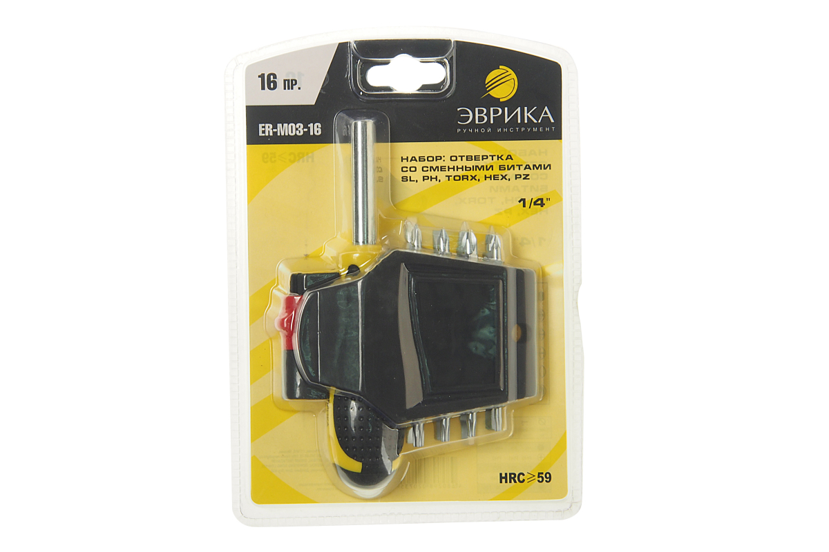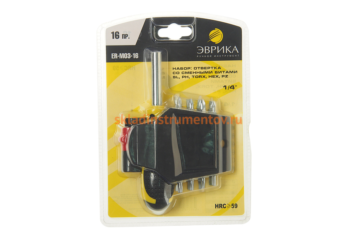 Отвертка-вороток с набором бит ЭВРИКА держатель, 1/4 ER-M03-16 подходит для профессионального использования.