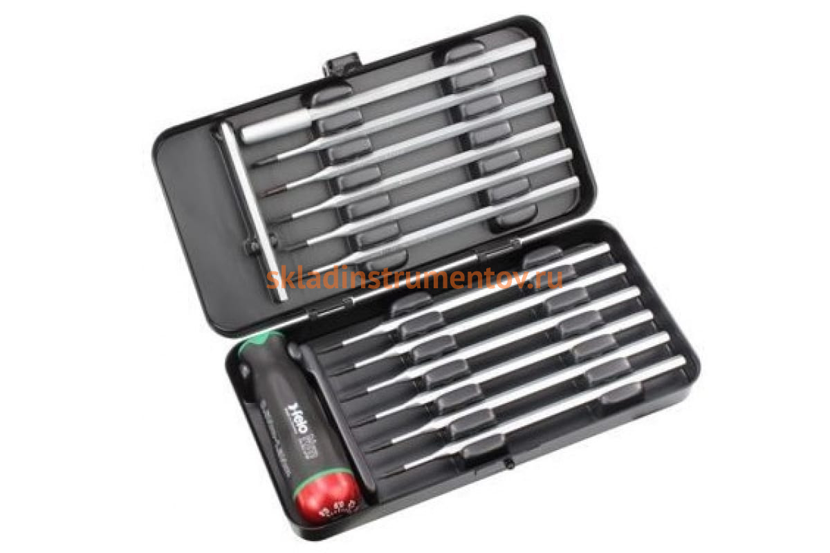 Отвертка с регулировкой крутящего момента с набором насадок 12 шт в кейсе Felo 10099116 может использоваться в разных областях, благодаря большому количеству заменяемых стержней. Диапазон затягивания - в пределах 0.6 - 1.5 Нм. Механические и акустические сигналы извещают пользователя о точном достижении выставленного усилия. Все рукоятки сертифицированы и откалиброваны. Детали комплекта изготовлены из хром-молибден-ванадиевой стали, поэтому отличаются износоустойчивостью, превышающей многократно технические требования. Двухкомпонентная рукоятка не скользит в руке и имеет эргономичный дизайн, благодаря чему инструментом удобно пользоваться.