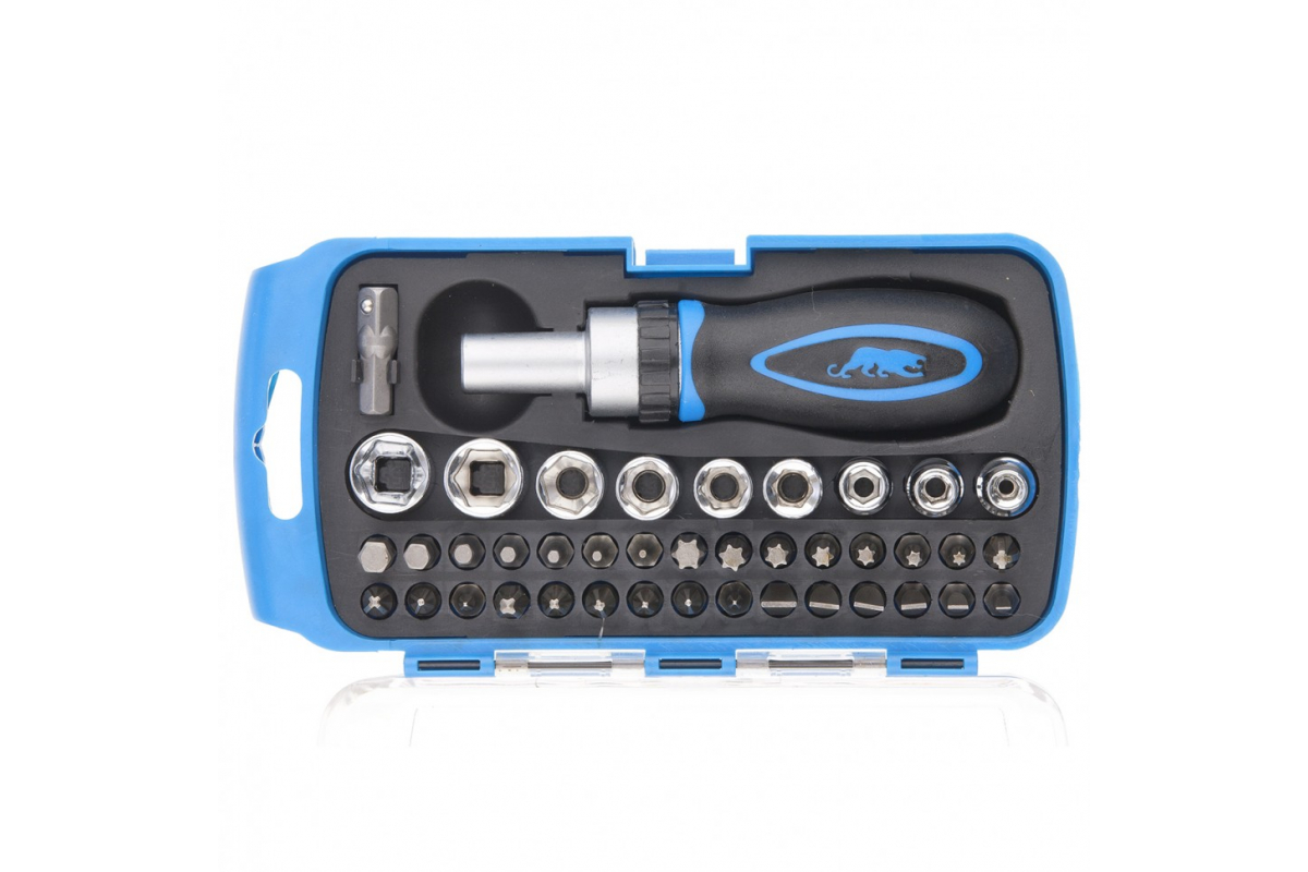 Реверсивная отвертка БАРС с набором бит и торцевых головок, 41 шт. 13358 предназначена для проведения монтажных и демонтажных работ. Подойдет для профессиональных целей и эксплуатации в мастерских, сервисных центрах, автосервисах.