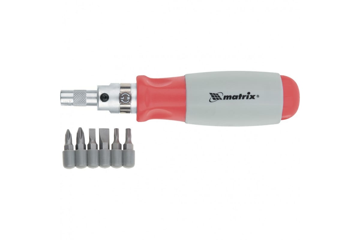 Реверсивная отвертка с набором бит 6 шт MATRIX 11549 имеет удобную двухкомпонентную ручку, которая позволяет ей хорошо лежать в руке, не выскальзывая в процессе работы. Изделие оснащено силовым элементом под ключ. Дополнительный комфорт обеспечивает реверсивный механизм, который избавляет от лишнего перекатывания отвертки в ладони.