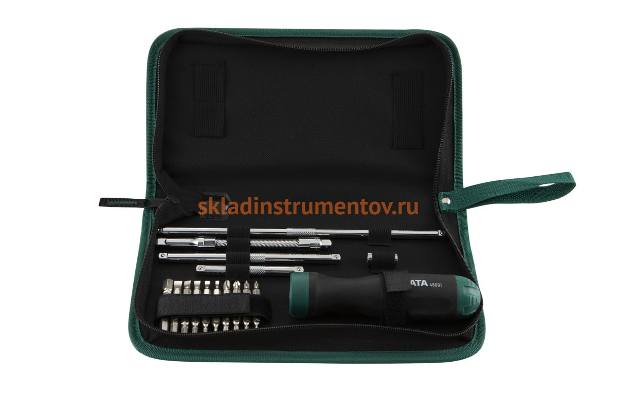 Набор отверток и бит с трещоточной храповой рукояткой 26шт Sata 09343 включает в себя прочные и надежные в работе компоненты для ручной затяжки и откручивания винтов с различными внутренними профилями. Рукоятка удобно располагается в ладони за счет эргономичной формы. Входящие в комплект шарнир и удлинители облегчают выполнение крепежных операций в местах с ограниченным доступом.