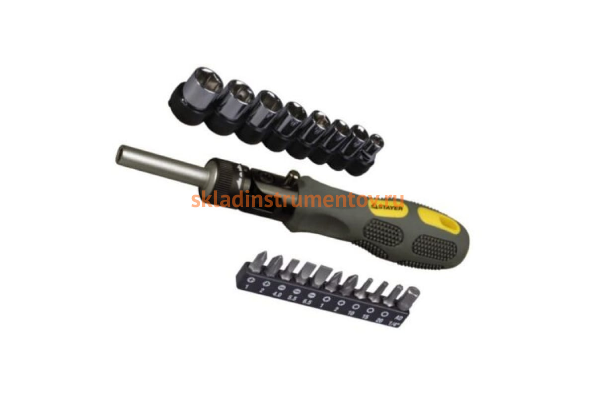 Отвертка STAYER MAX-GRIP 20 предметов 2585-H20 G используется при работах с различными видами крепежа. Отвертка оснащена всевозможными битами для монтажа шестигранных, крестообразных и плоскошлицовых соединений. Для удобства работы инструмент оснащен реверсом.