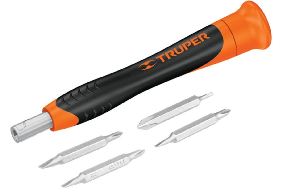 Прецизионная отвертка с набором бит 8 шт Truper JOY-8 14203 служит для выполнения ремонтных или сборочных работ разнообразных конструкций, где используется крепеж с плоским или крестовым шлицем. Отвертка проста в применении, она надежно удерживает вставленную насадку, что обеспечивает точность в процессе крепежных операций. В комплекте к инструменту поставляются 4 биты распространенных типов и размеров.