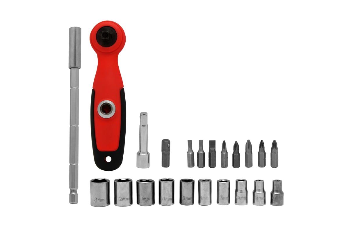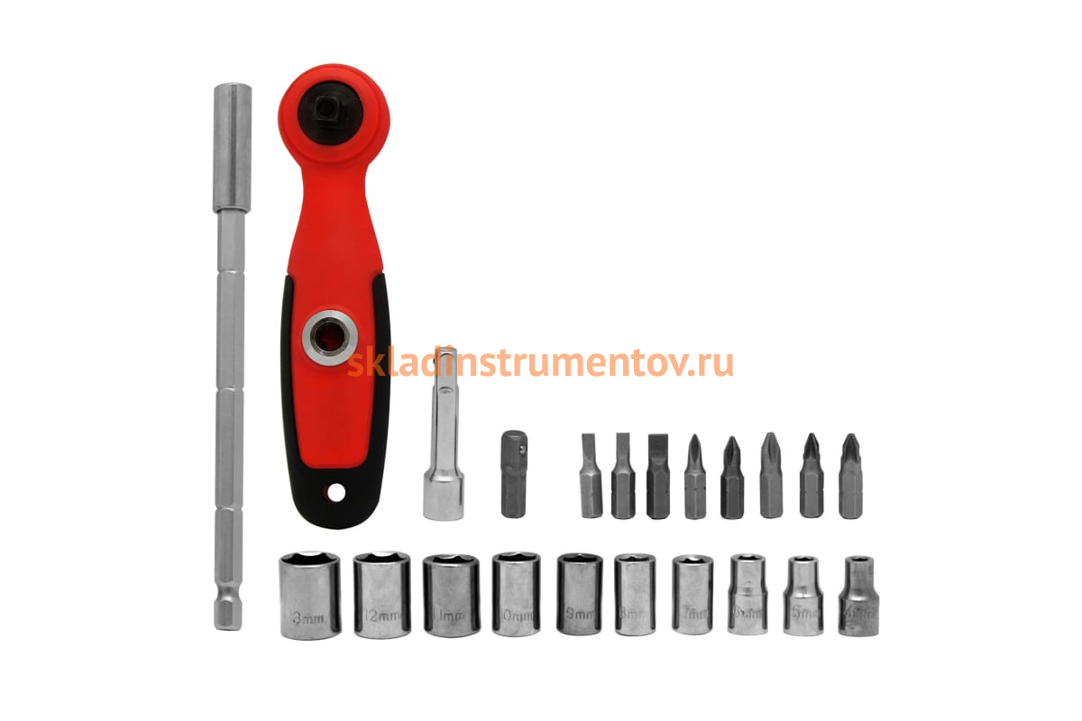 Набор головок и бит с реверсивной отверткой VIRA 22 предмета 305077 подойдет для работы с крепежом, имеющим внешнюю или внутреннюю головки. Биты изготовлены из хромованадиевой стали, а головки - из высокоуглеродистой стали CS. Отвертка с реверсивным механизмом имеет две фазы использования для работы с битами и головками.