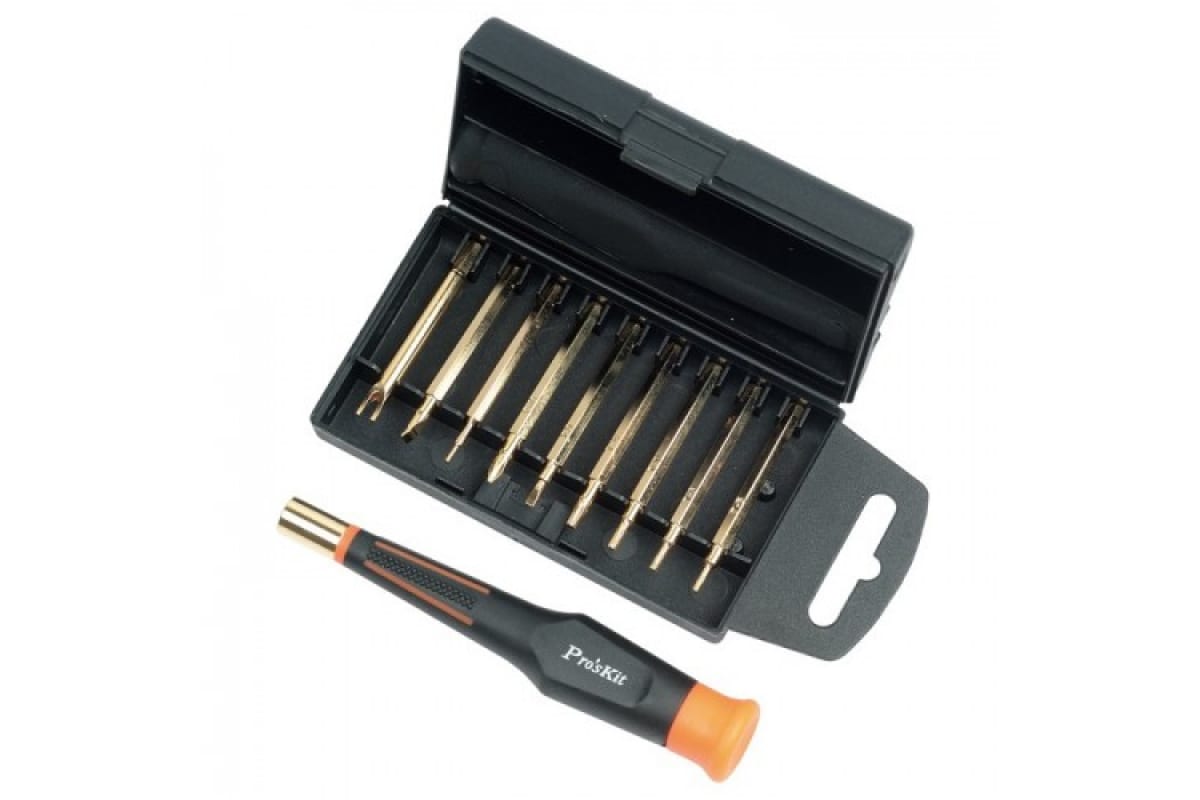 Набор отверток ProsKit 8PK-6182 00181006 содержит также вспомогательный инструмент, который позволяет работать со сложными декоративными крышками и задними панелями электроники.