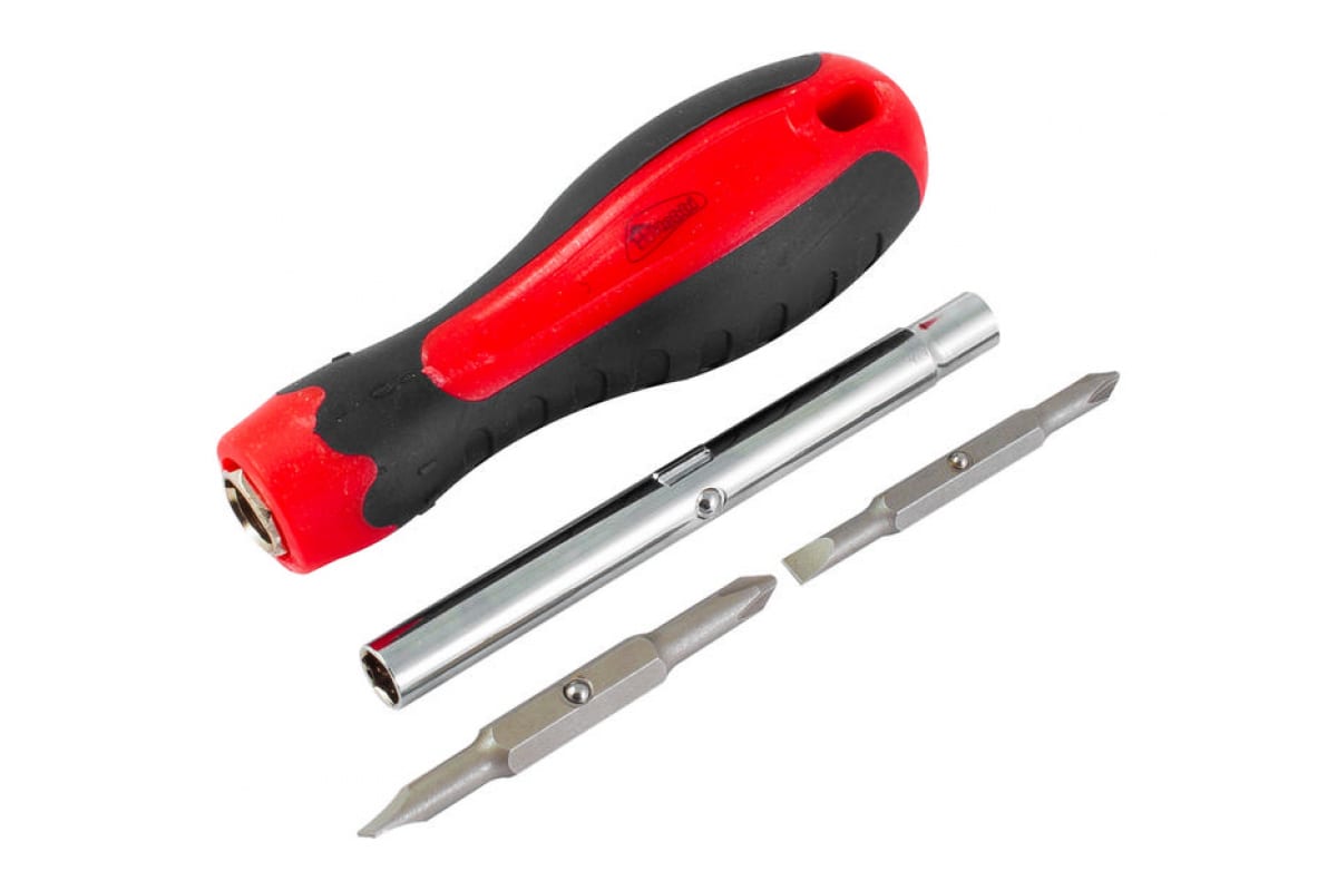 Переставная отвертка с двумя двухсторонними битами РемоКолор SL6*PH2; SL4*PH1 33-0-002 предназначена для монтажа и демонтажа крепежных изделий.
