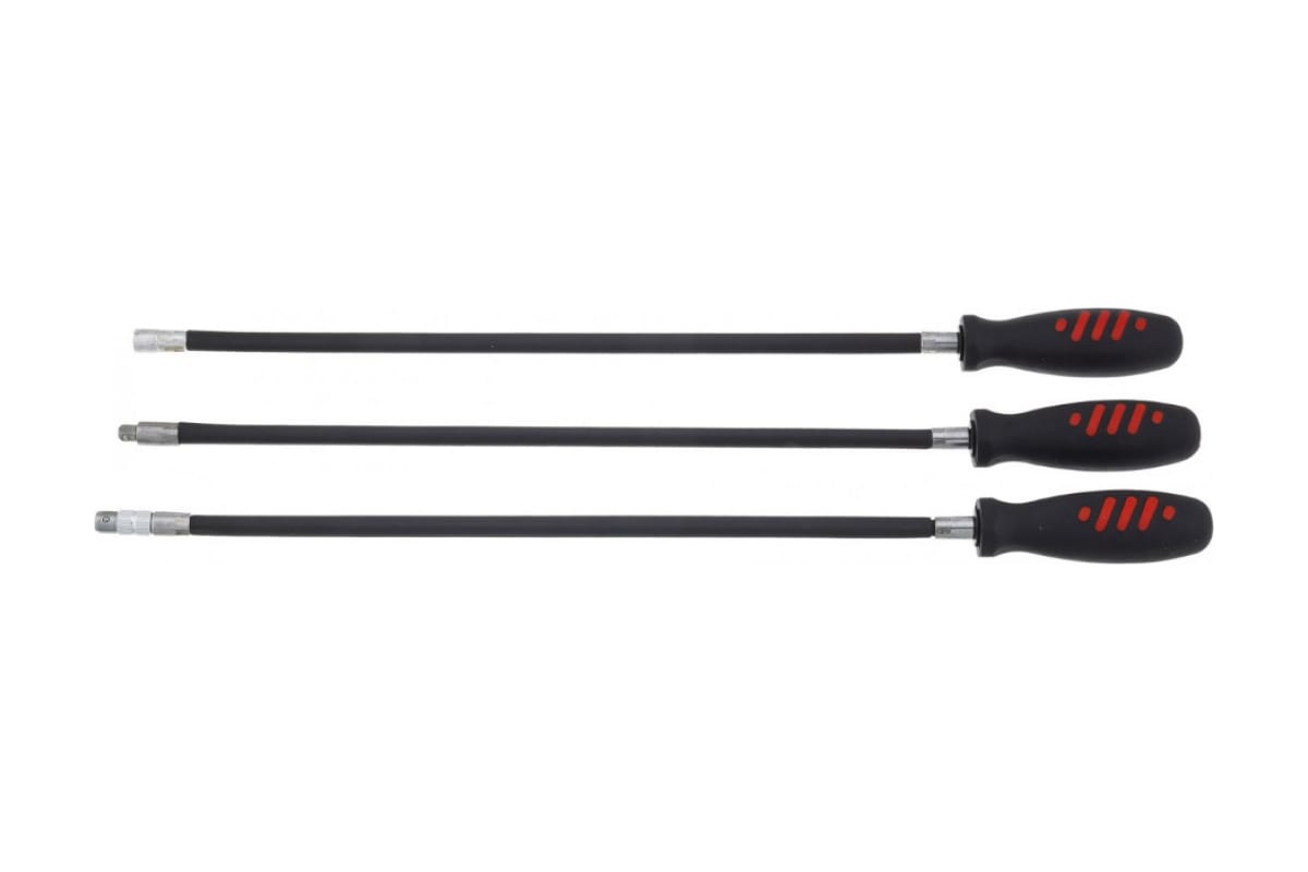 Набор удлинителей Станкоимпорт ОГ.14.56.3 состоит из трех предметов. Гибкий удлинитель применяется для работы с торцевыми головками. Удлинитель с битодержателем используется для монтажа/демонтажа крепежных элементов совместно с битами. Магнитный захват предназначен для извлечения металлических деталей из труднодоступных мест. Ручки являются двухкомпонентными для более надежного удержания и предотвращения соскальзывания рук во время работы.