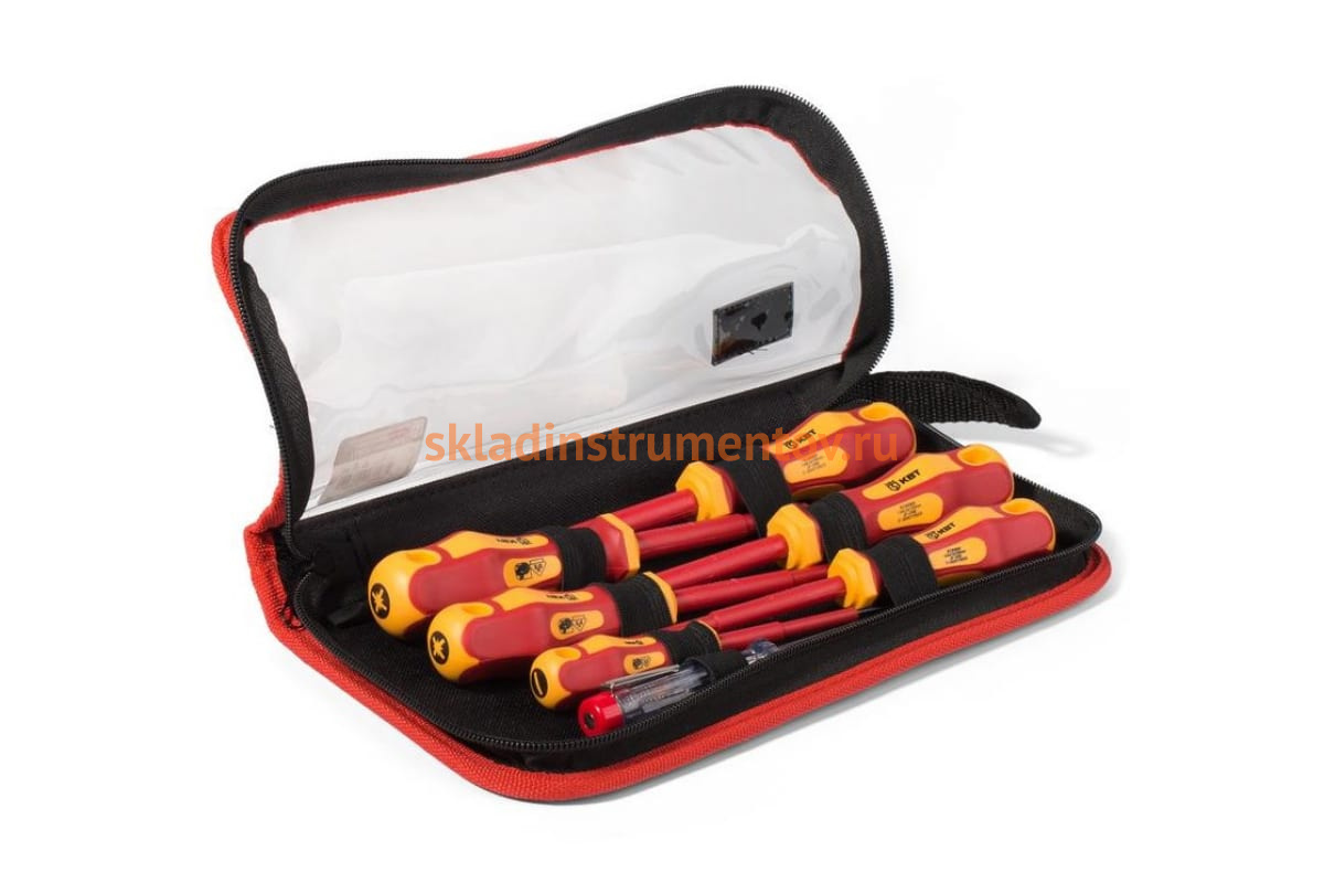 Набор диэлектрических отверток Стандарт КВТ НИО-07 73578 используется для работ с крепежными элементами, находящимися под напряжением до 1000 В. В комплекте представлены наиболее востребованные в работе электромонтажника отвертки, в том числе индикаторная для проверки наличия напряжения. Намагниченный вороненый наконечник обеспечивает удобство при работе с крепежом в труднодоступных местах.