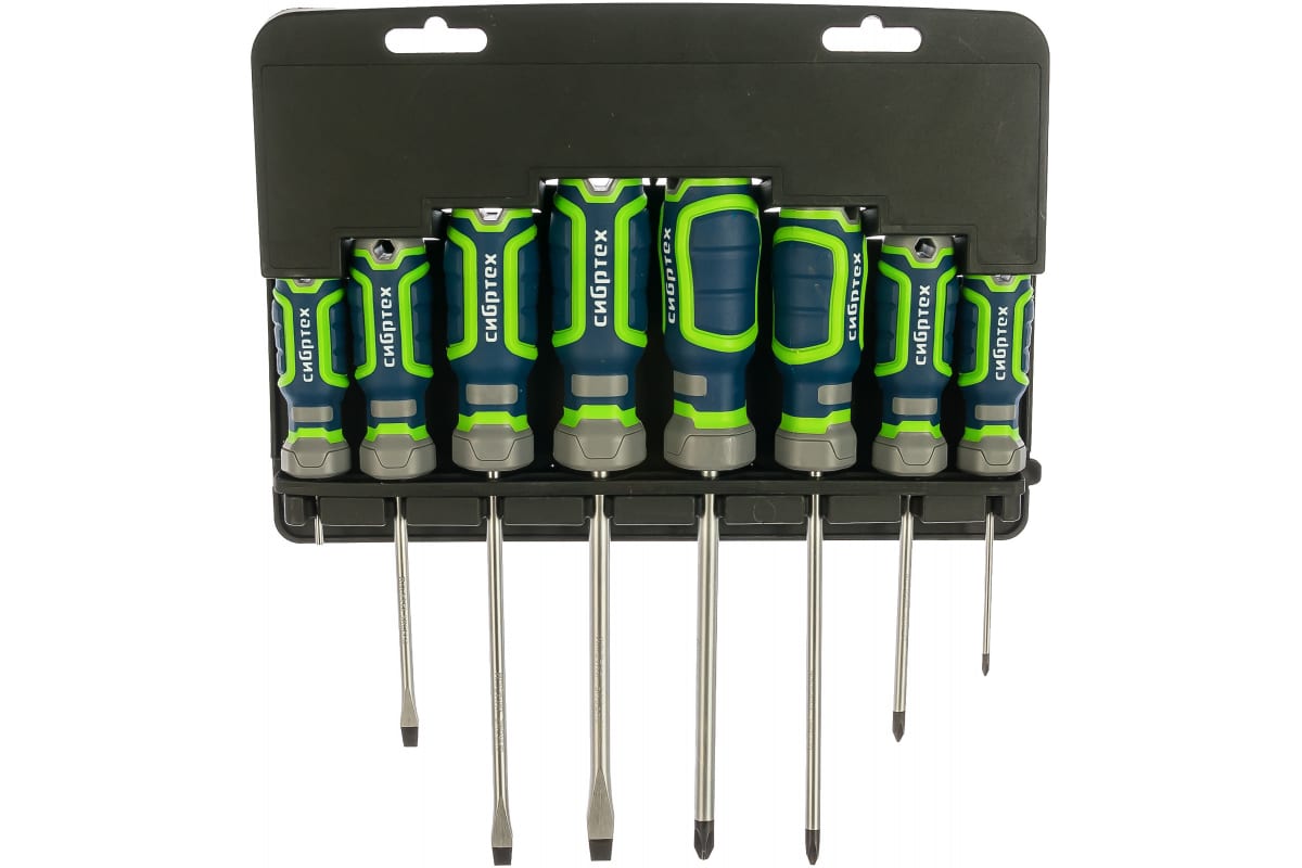 Набор отверток, CrV, 4-х компонентные рукоятки, 8 предметов СИБРТЕХ 13373 служит для работ с различными типами крепежных соединений. В набор входит отвертка для работ с электроникой, часами и другими мелкими соединениями. Эргономичные рукояти отверток обеспечивают надежный захват в руке во время эксплуатации.