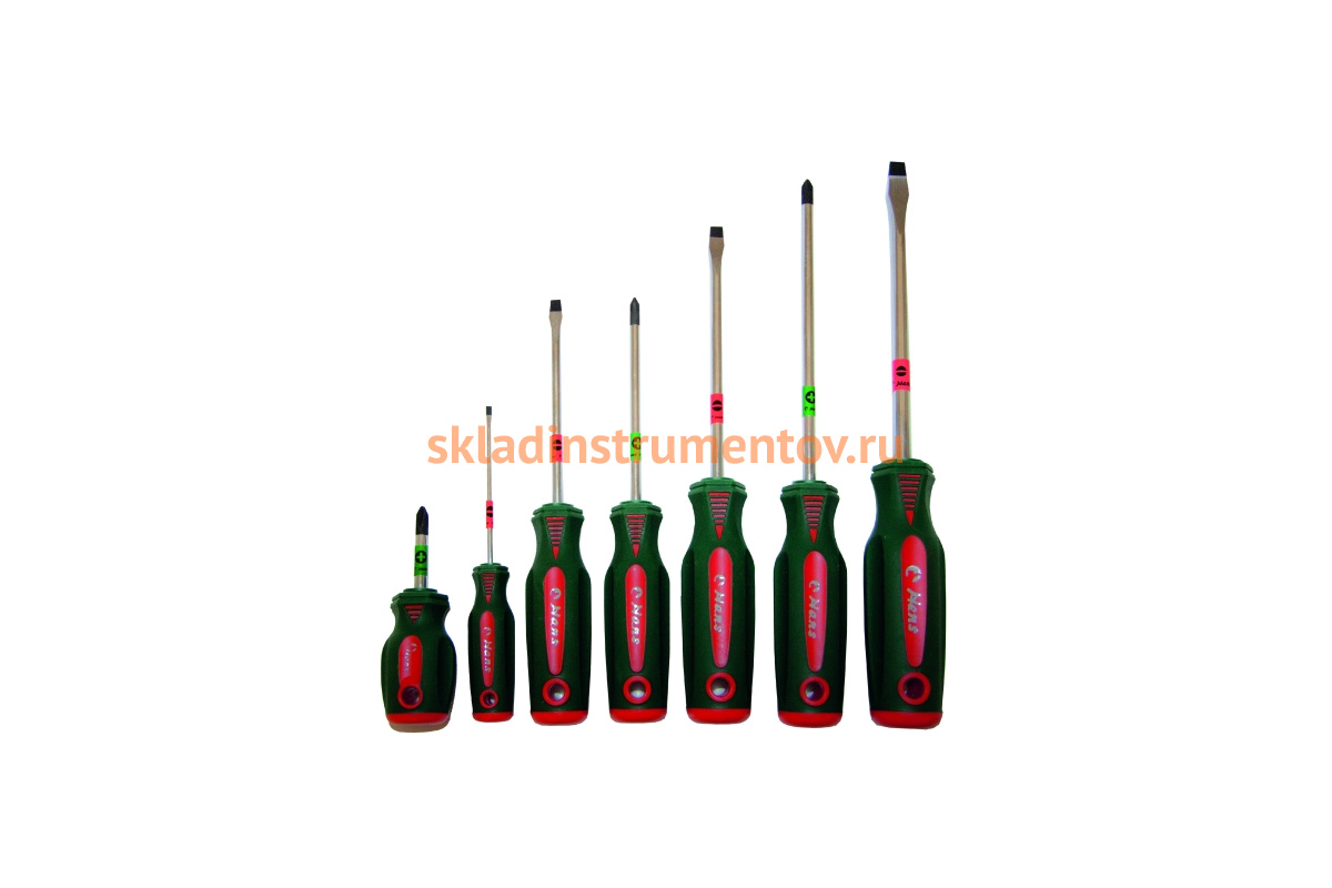 Отвертки оснащены намагниченными наконечниками, которые позволяют работать с винтами в пазах и подобными труднодоступными местами.