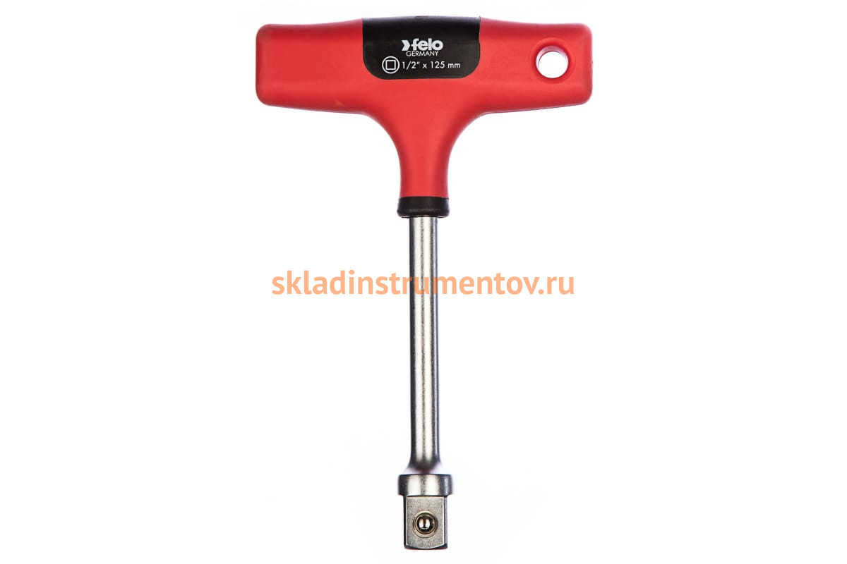 Т-образная отвертка под головки 1/2" Felo используется для работ с торцевыми головками и разного вида соединениями. Посадочный квадрат - 1/2. Стержень изготовлен из хром-молибден-ванадиевой стали, закаленной в масле, поэтому имеет высокий рабочий ресурс и повышенную прочность. Рукоятка Т-образной формы выполнена из двухкомпонентного пластика, обеспечивающего крепкий захват и комфортное использование.