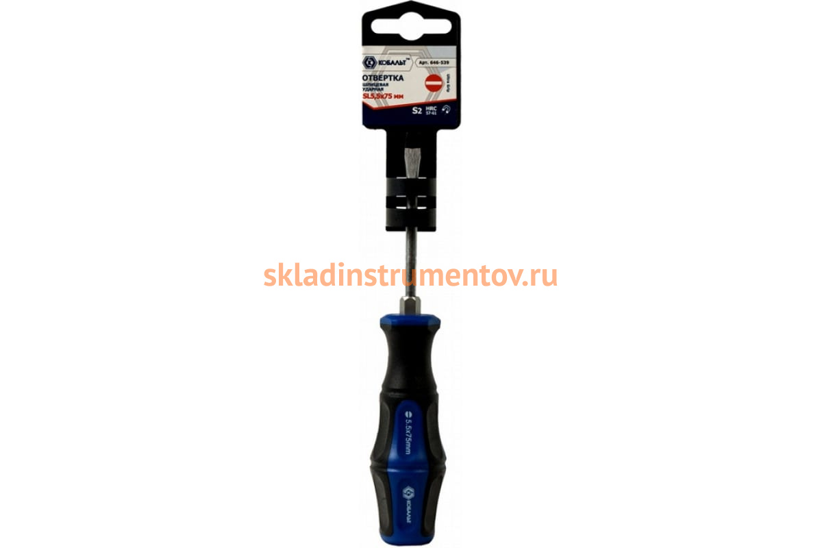 Отвертка ударная Ultra Grip SL 5.5 x 75 мм S2 КОБАЛЬТ 646-539 применяется для работ с резьбовыми крепежом, а также как ударный инструмент. Магнитный наконечник, встроенный в стержень из качественной стали, обеспечивает точный контроль над крепежом в его фиксацию. Ручка отвертки крепко лежит в руке во время рабочего процесса.