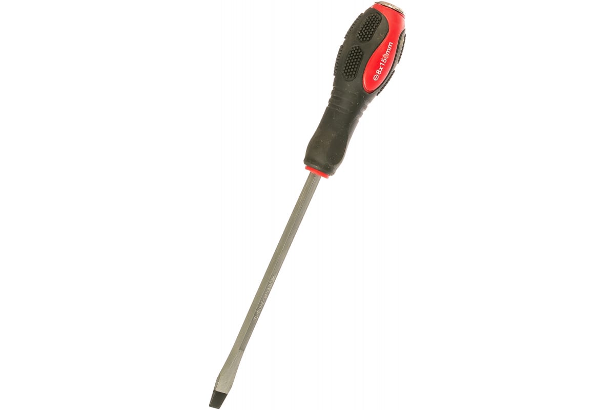 Усиленная плоская отвертка 8Х150 мм КЕДР 032-1907 25040 имеет жесткий стержень, который исключает потери усилия при заворачивании крепежа. Инструмент удобен в использовании за счет нескользящей двухкомпонентной рукоятки. Присутствует упор для пальцев.